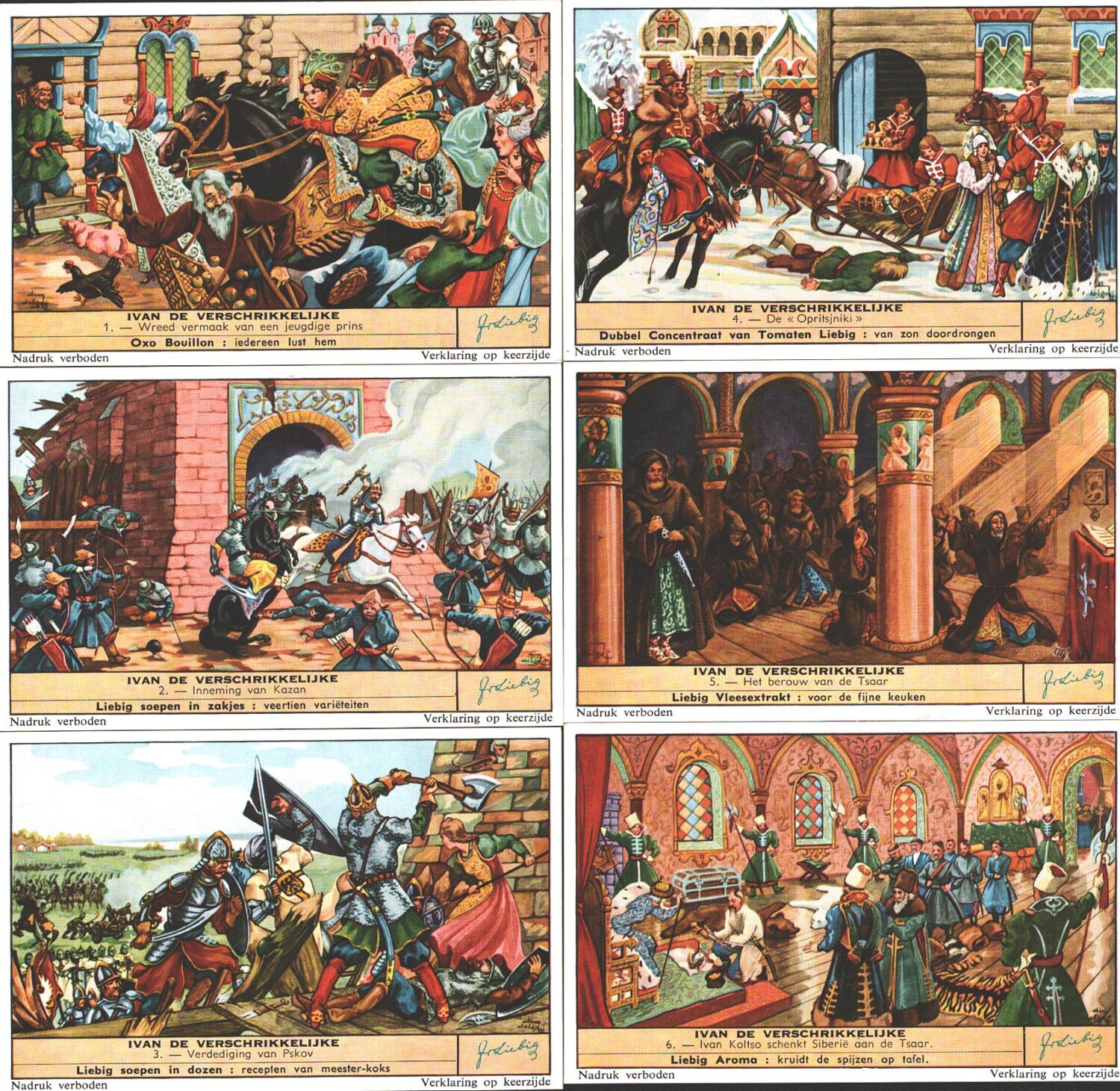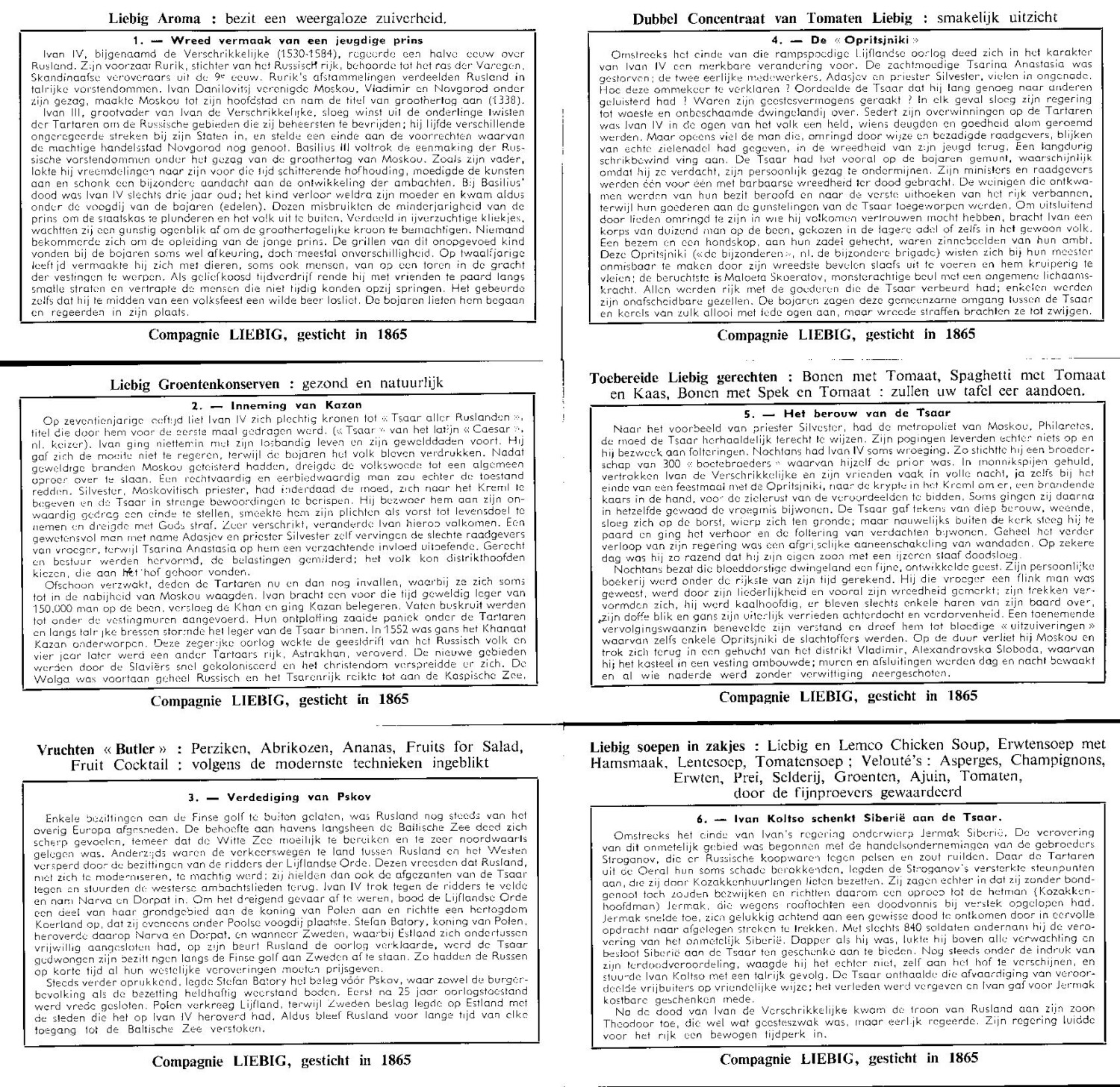 | Titolo: | Figurine Liebig – Serie n. 1646 Completa (6 figurine) – Ivan De Verschrikkelijke – Edizione Fiamminga 1956 |