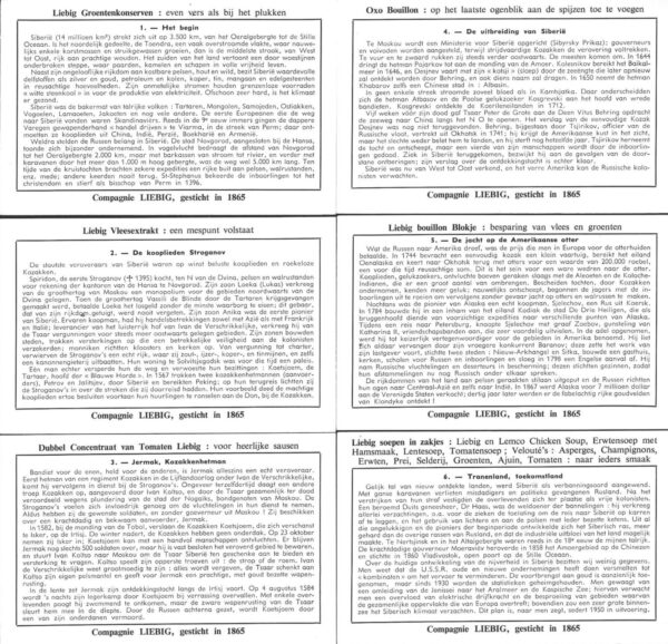 | Titolo: | Figurine Liebig – Serie n. 1676 Completa (6 figurine) – Siberie – Edizione Fiamminga 1957 |