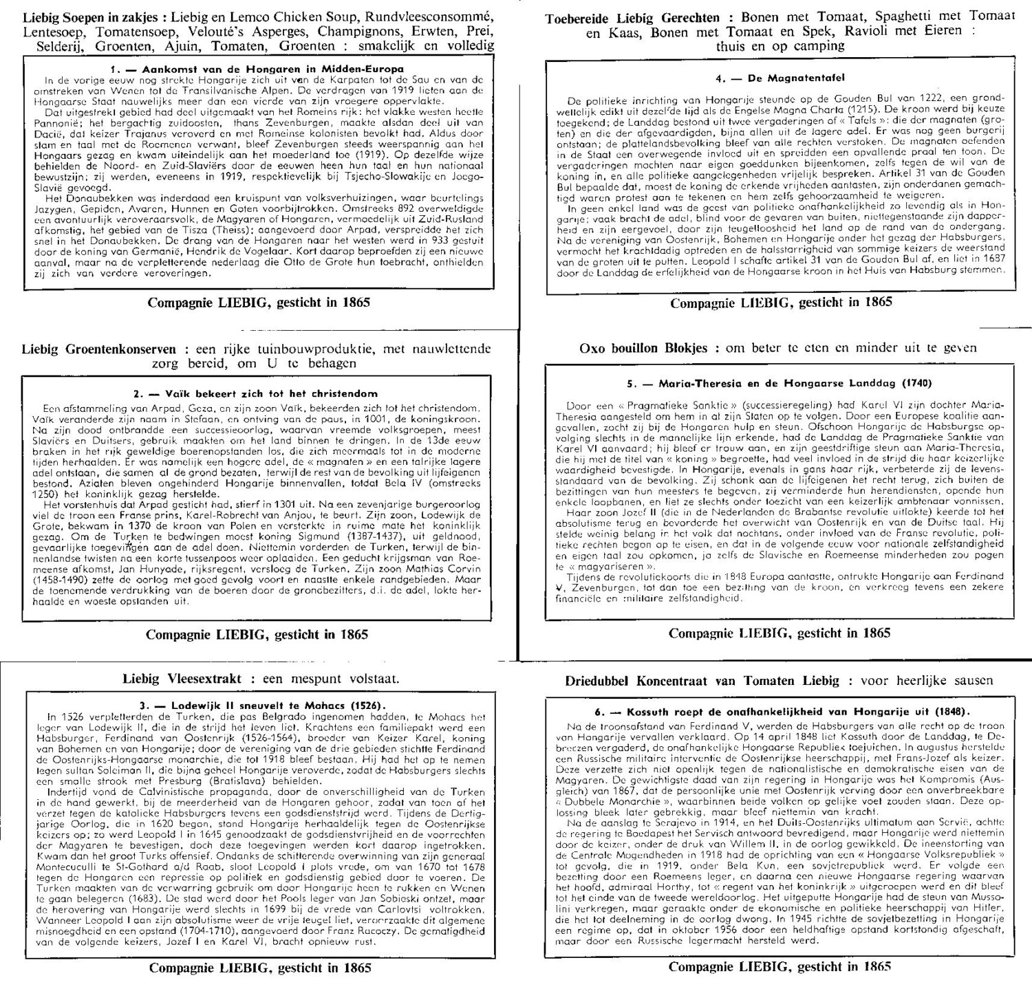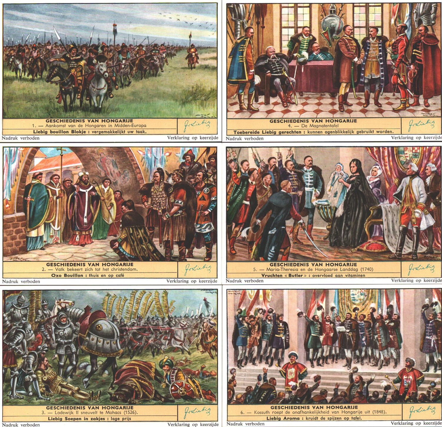 | Titolo: | Figurine Liebig – Serie n. 1681 Completa (6 figurine) – Geschiedenis Van Hongarije – Edizione Fiamminga 1957 |