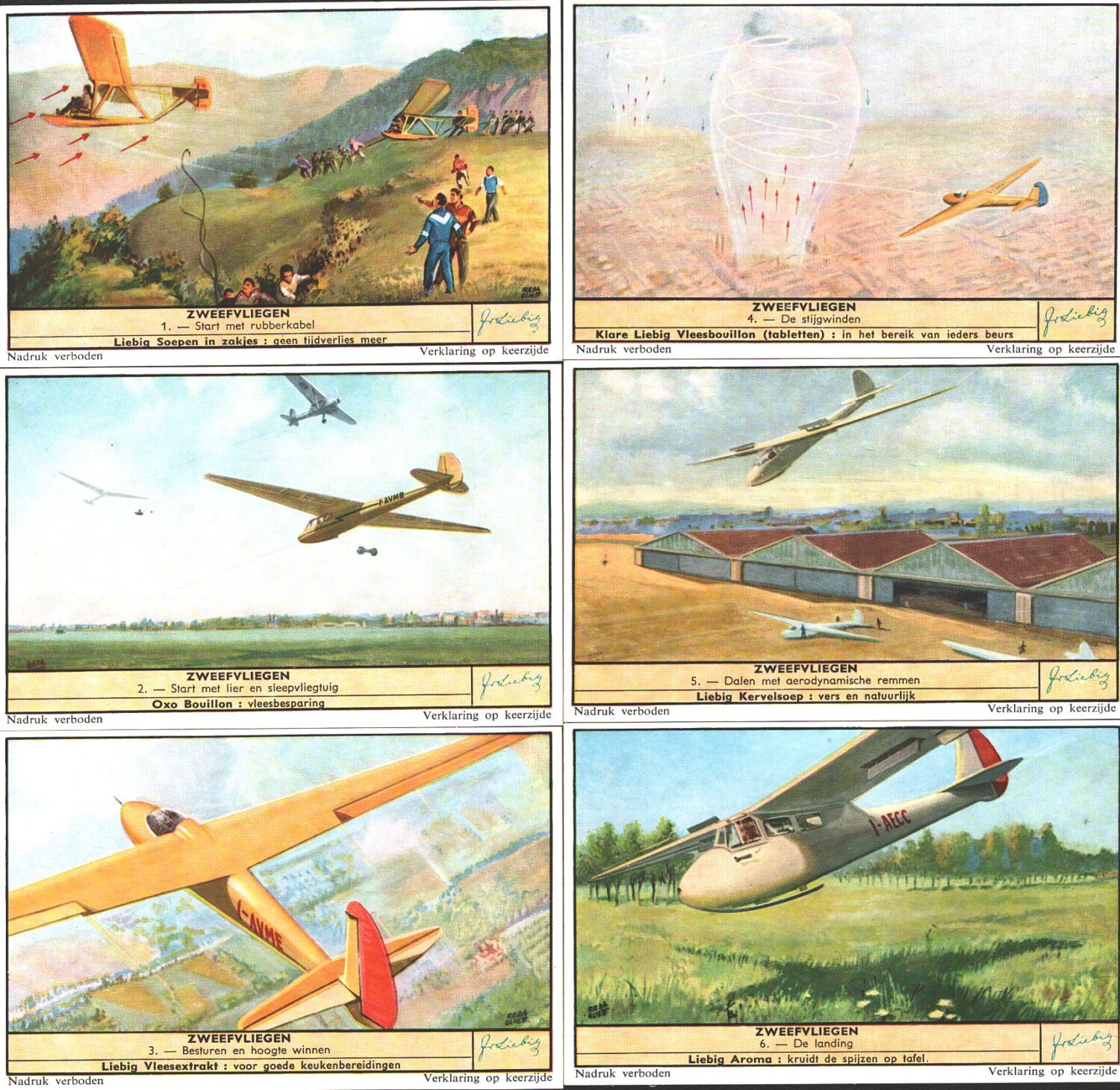 | Titolo: | Figurine Liebig – Serie n. 1683 Completa (6 figurine) – Zweefvliegen – Edizione Fiamminga 1957 |