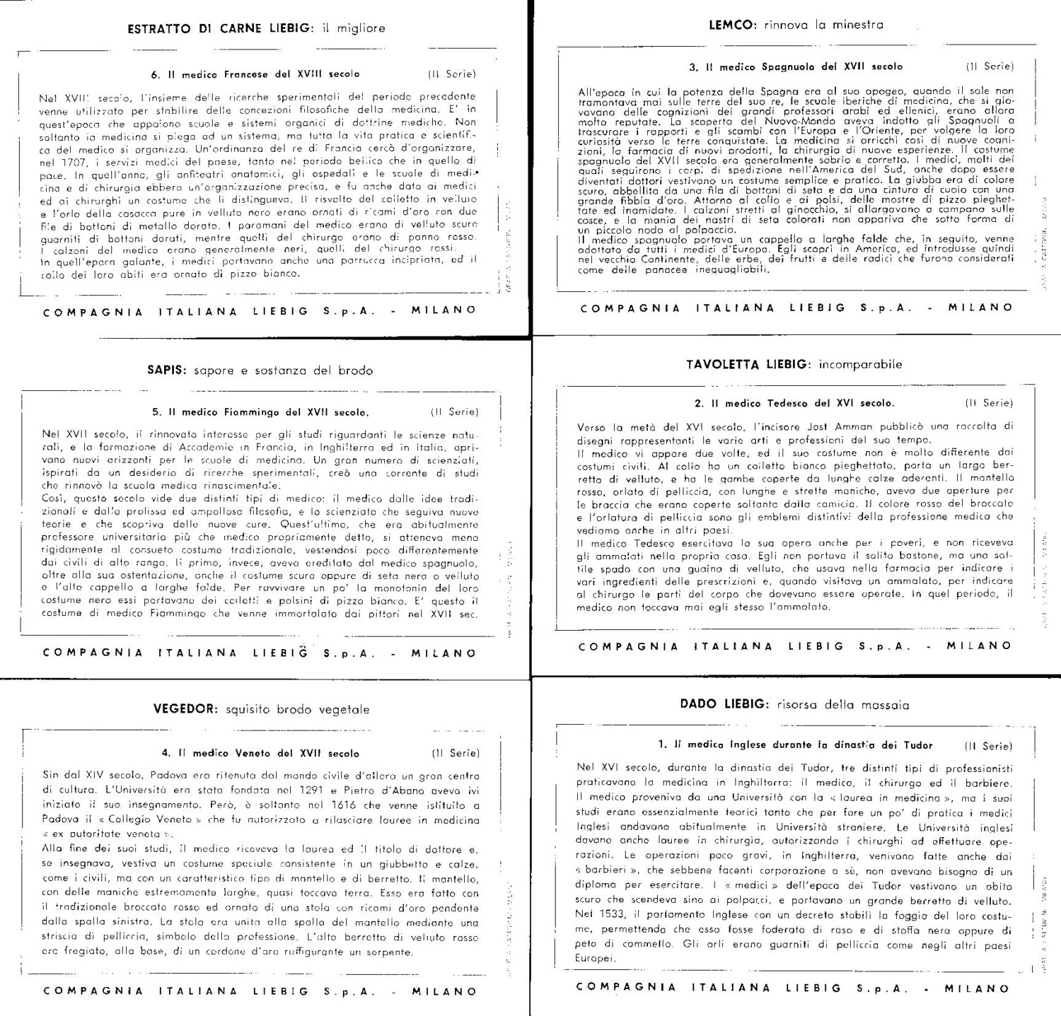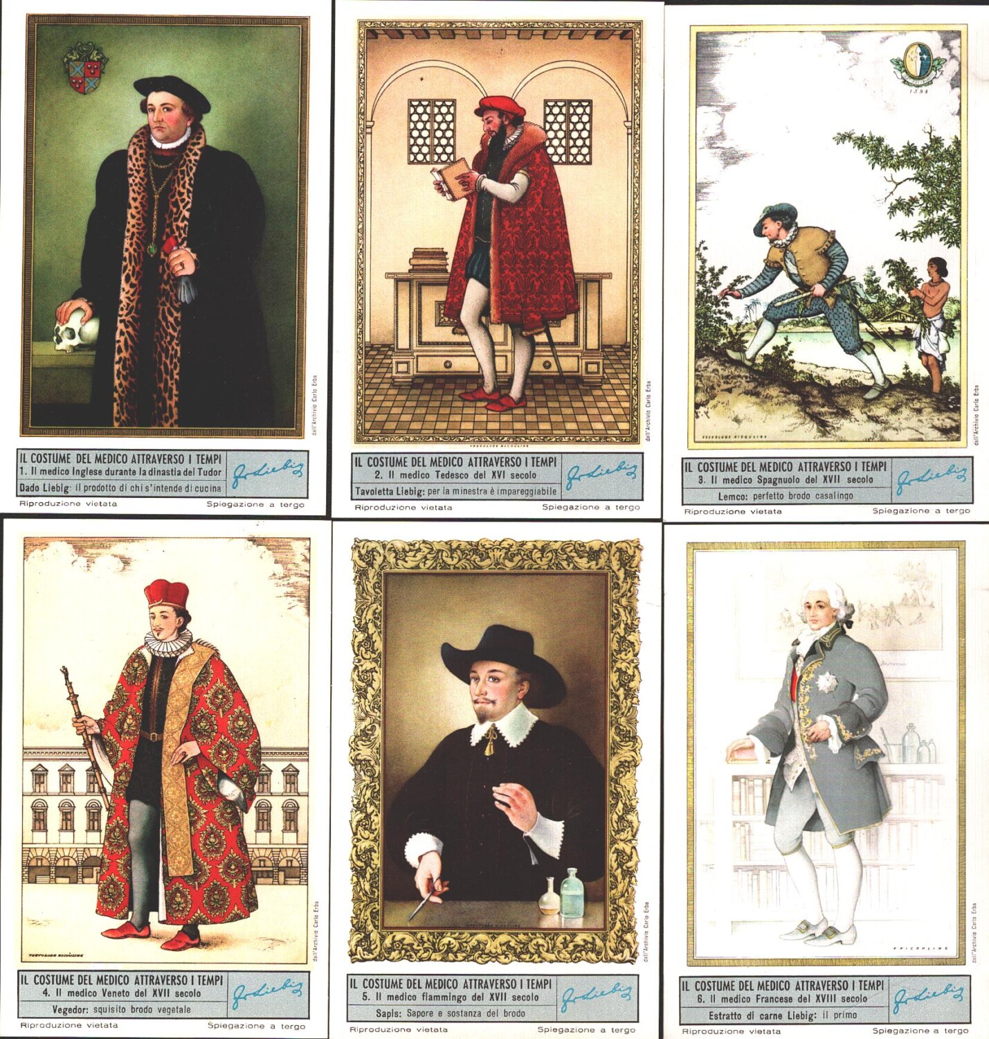 Figurine Liebig – Serie n. 1686 Completa (6 figurine) – Il costume del medico attraverso i tempi – Edizione Italiana