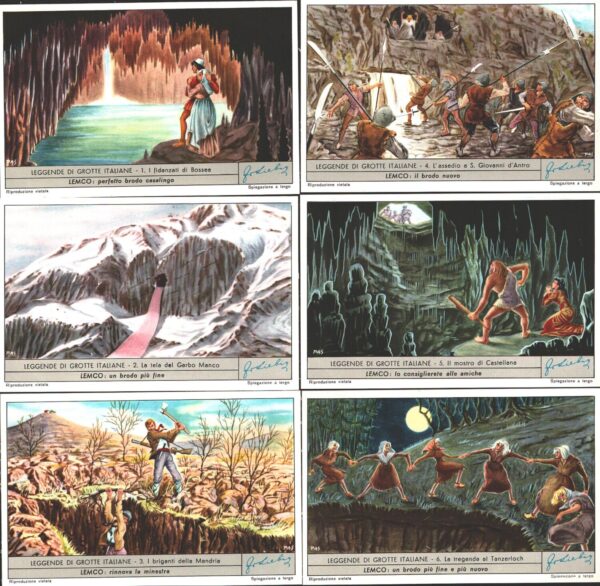 | Titolo: | Figurine Liebig – Serie n. 1690 Completa (6 figurine) – Leggende di grotte italiane – Edizione Italiana 1958 |
