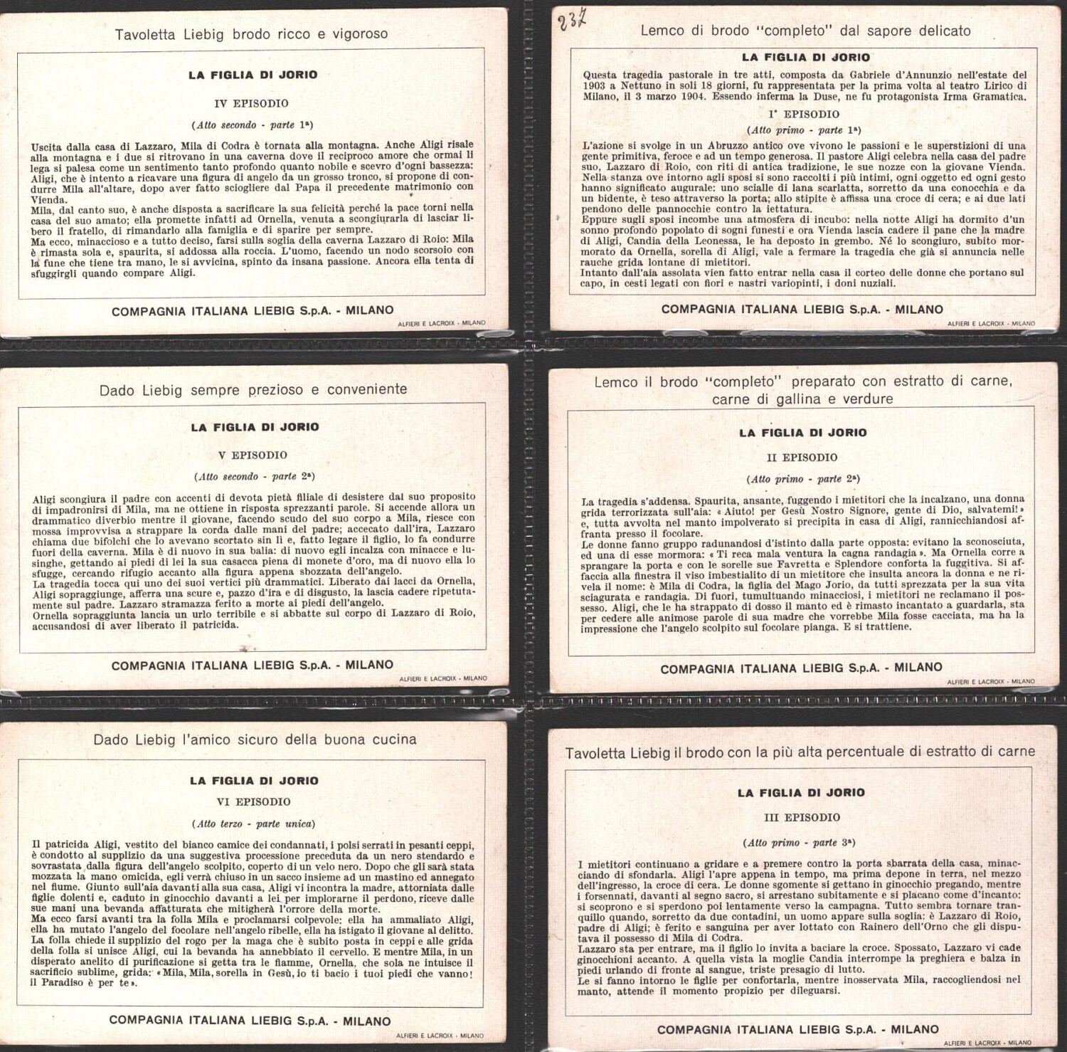 | Titolo: | Figurine Liebig – Serie n. 1762 Completa (6 figurine) – La figlia di Jorio – Edizione Italiana 1961 |