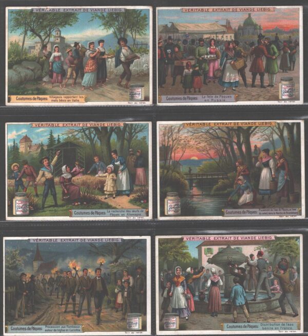 | Titolo: | Figurine Liebig – Serie n. 665 Completa (6 figurine) – Coutumes de Paques – Edizione Belga 1901 |