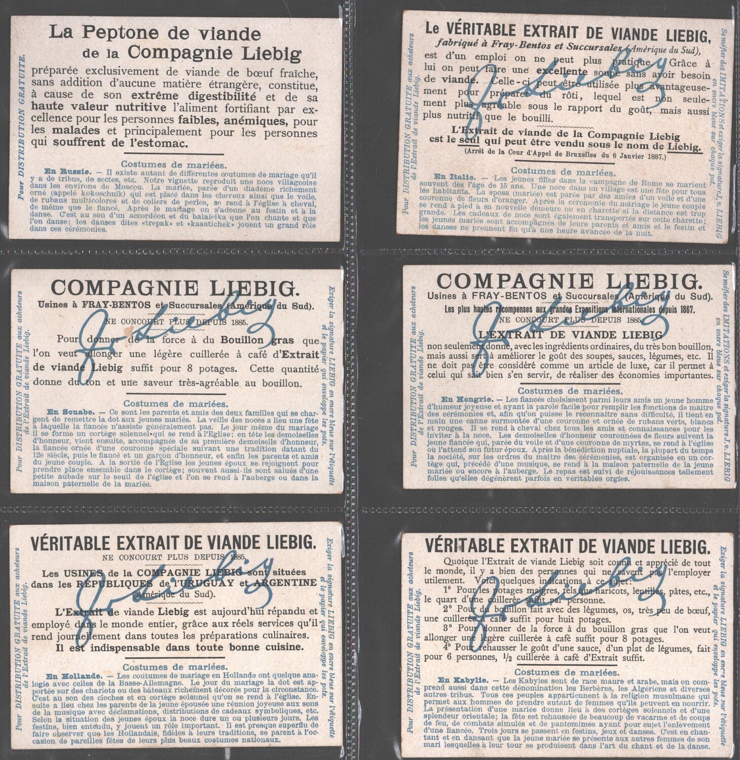 | Titolo: | Figurine Liebig – Serie n. 769 Completa (6 figurine) – Costumes de mariees – Edizione Belga 1904 |