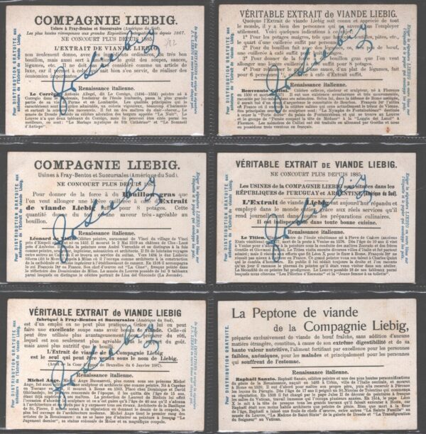 | Titolo: | Figurine Liebig – Serie n. 794 Completa (6 figurine) – La Renaissance Artistique en Italie – Edizione Belga 1904 |