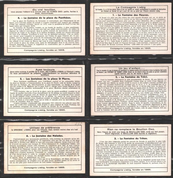 | Titolo: | Figurine Liebig – Serie n. 1376 Completa (6 figurine) – Les fontaines de Rome – Edizione Belga 1938 |