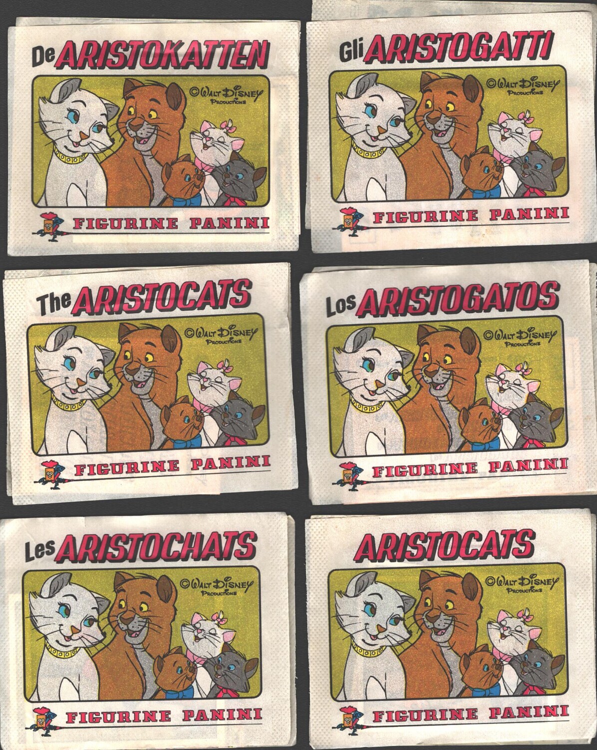 | Titolo: | Gli Aristogatti (Disney) – Lotto 6 bustine di figurine (Versione Internazionale) ed. Panini 1979 |