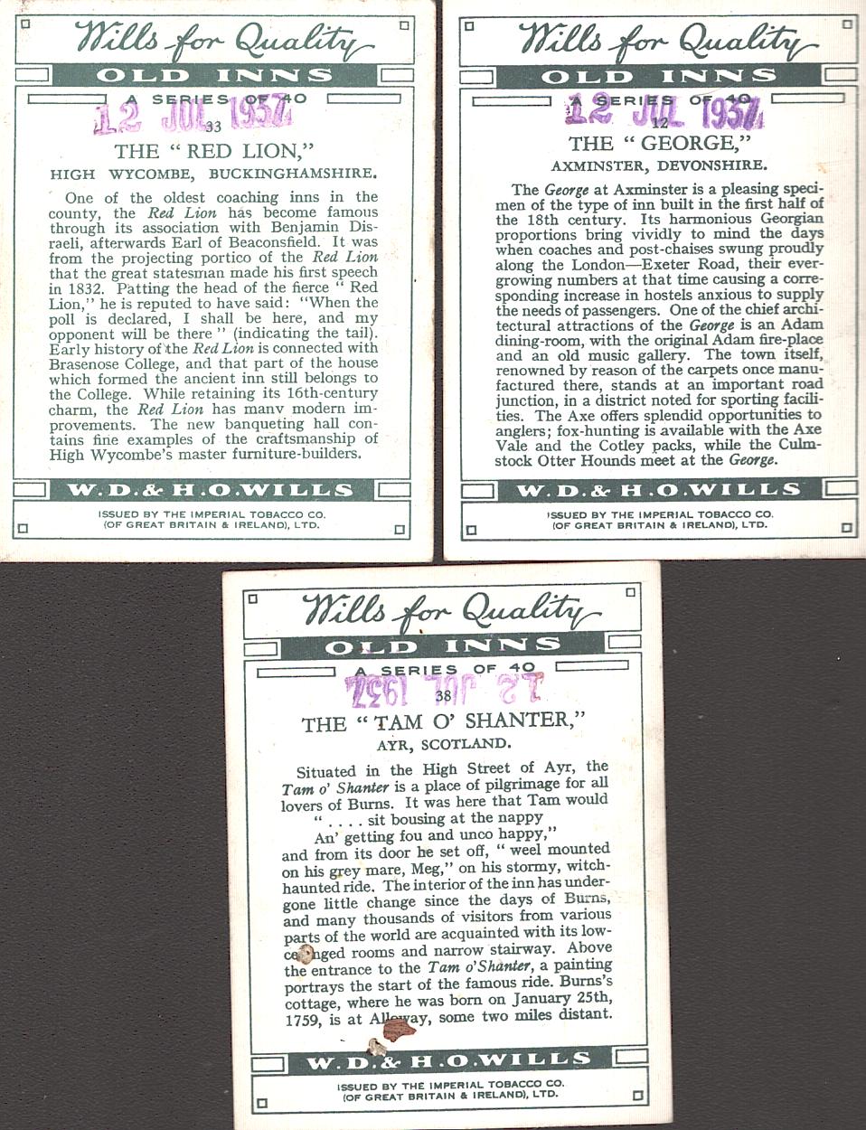 | Titolo: | Old Inns – Lotto 3 figurine cards – 1937 ed. Wills England |