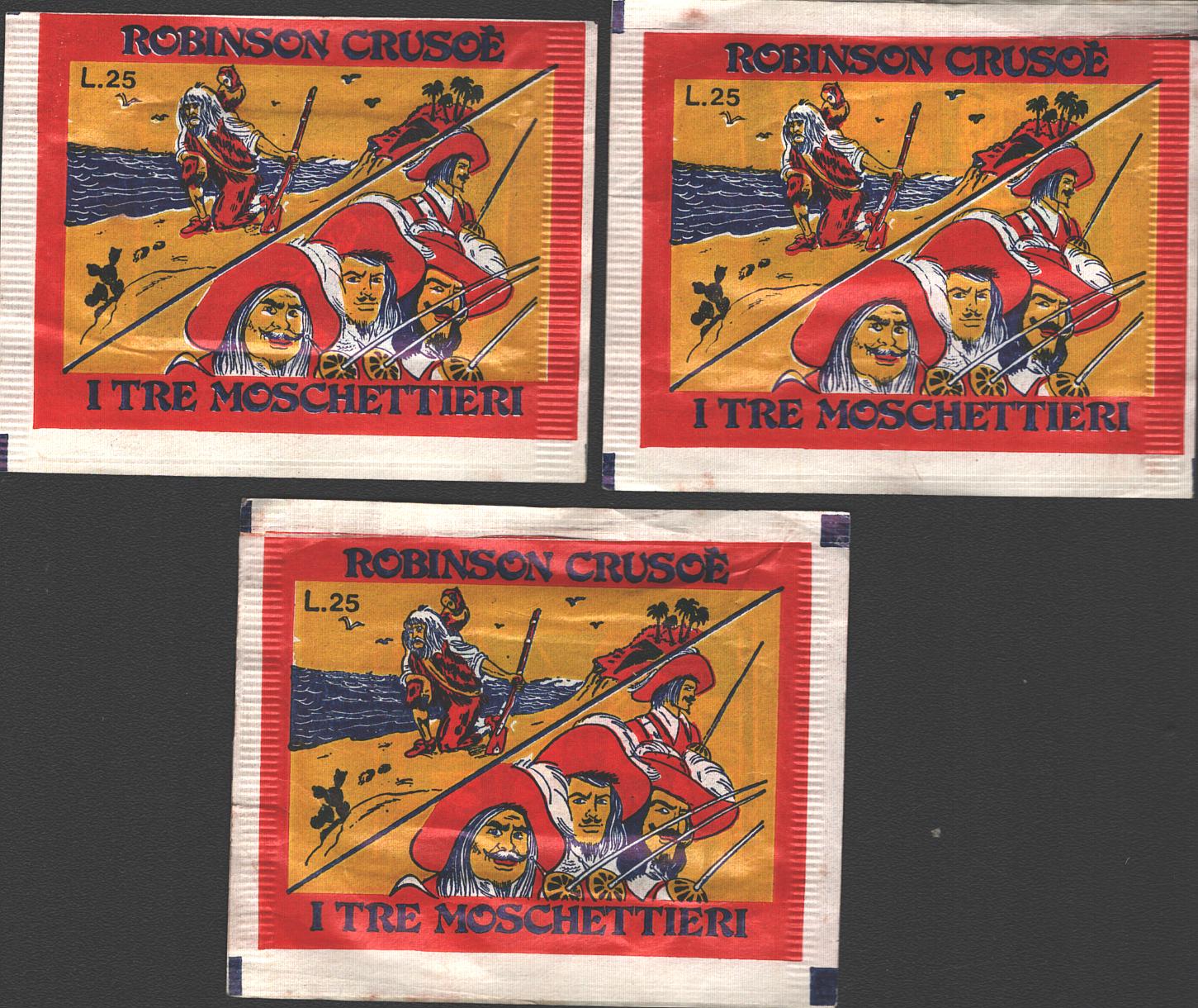 | Titolo: | Robinson Crusoè I tre Moschettieri – Lotto 3 bustine di figurine ed. M.C. anni ’70 |
