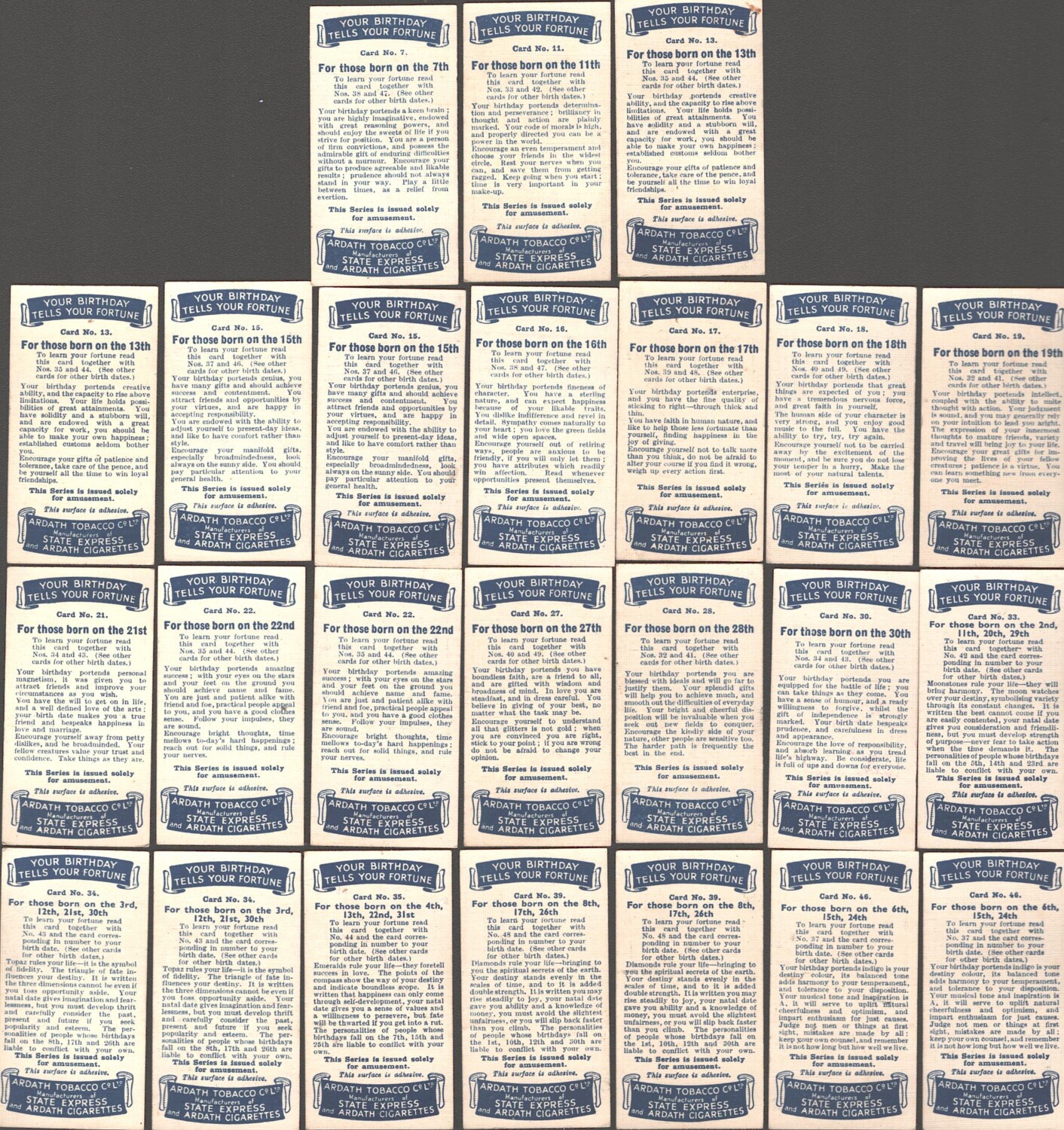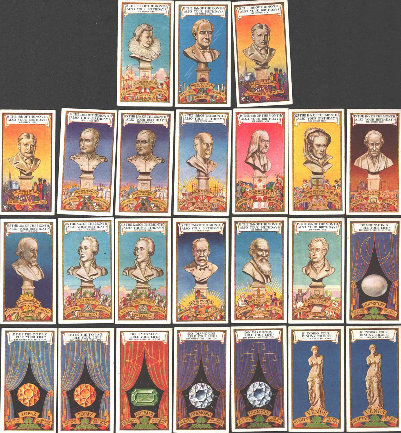 | Titolo: | Your Birthday Tells Your Fortune – Lotto 24 figurine cards anno 1937 ed. Ardath Tobacco England |