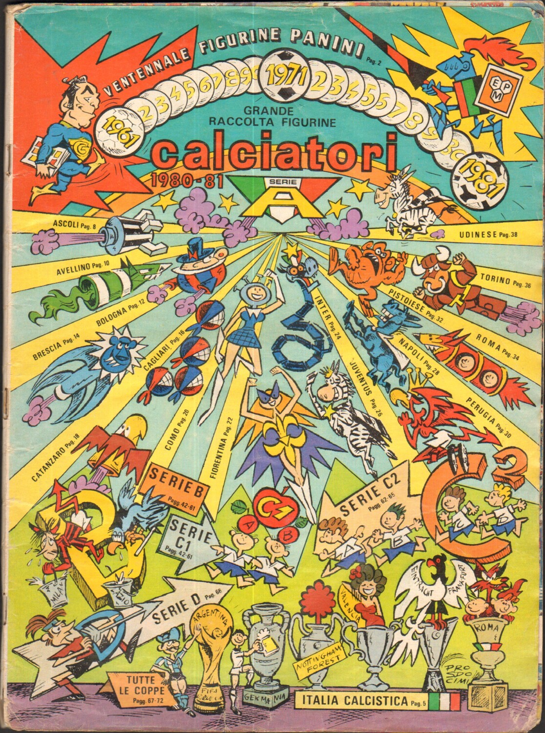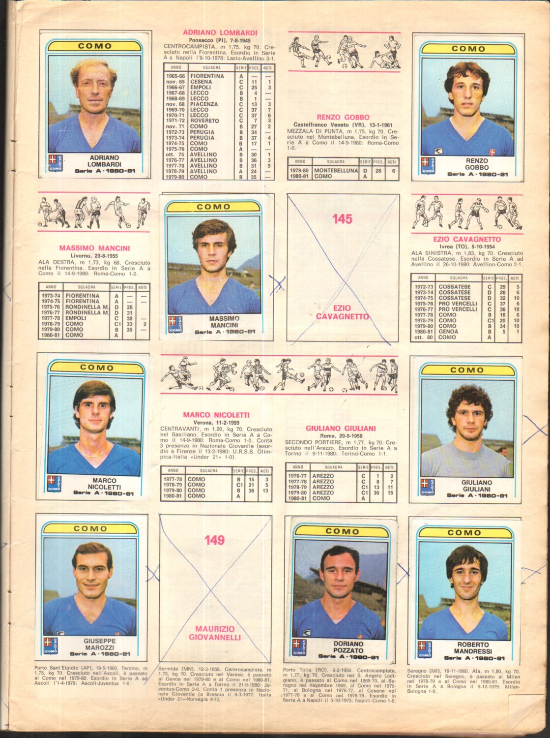 NOTA BENE: Copertina mancante, sono incluse 501 su 580 figurine .Sono presenti molti segni di penna e alcune scritte nei riquadri vuoti e di fianco alle figurine. Una figurina ha uno strappo con mancanza, un po' di usura ai borsi e qualche strappeto sulle pagine.Le figurine sono attaccate in modo abbastanza preciso.Delle pagine sono distaccate dalla rilegatura centrale.