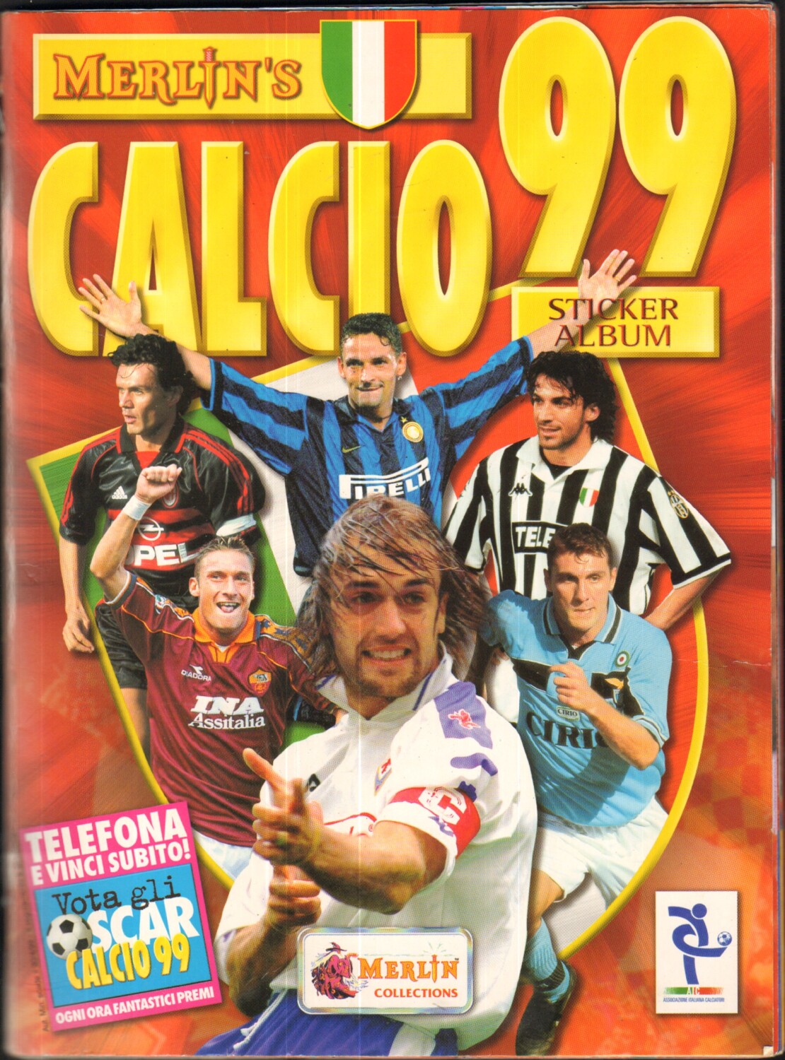 Album figurine Calciatori MERLIN’S CALCIO 99,1999. Merlin Collection. Quasi completo con 555 figurine attaccate su 608