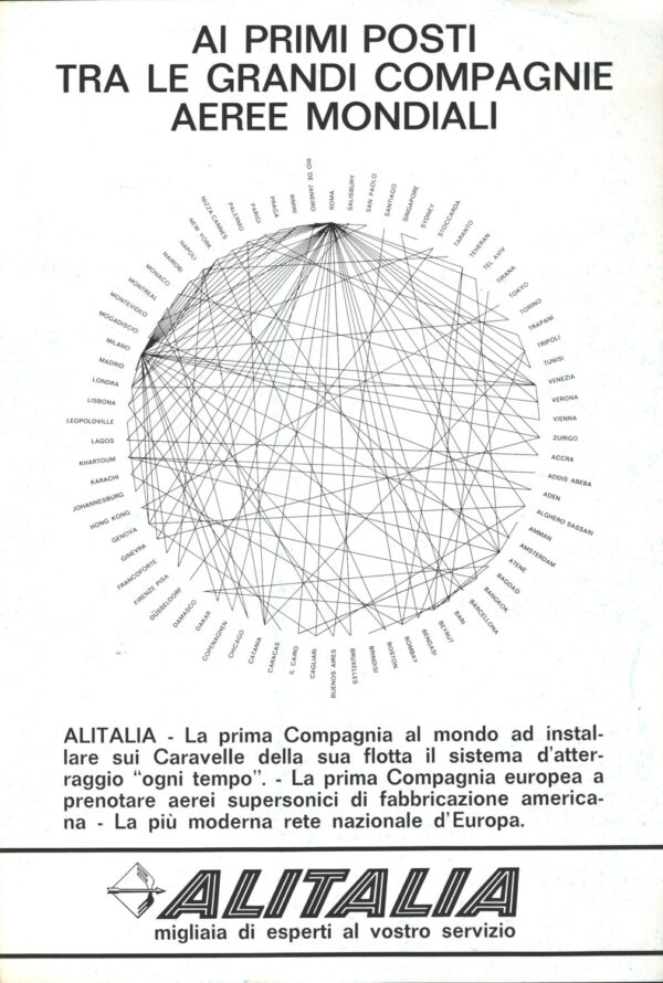 | Titolo: | Alitalia Flight – Pubblicità Ai primi posti tra le grandi compagnie aeree mondiali – anni ’60-’70 |
