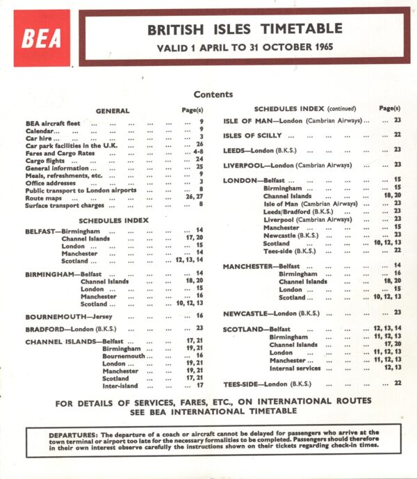 | Titolo: | BEA British European Airways Flight – British Isles Timetable 1965 – NON COMPLETO!!!! |