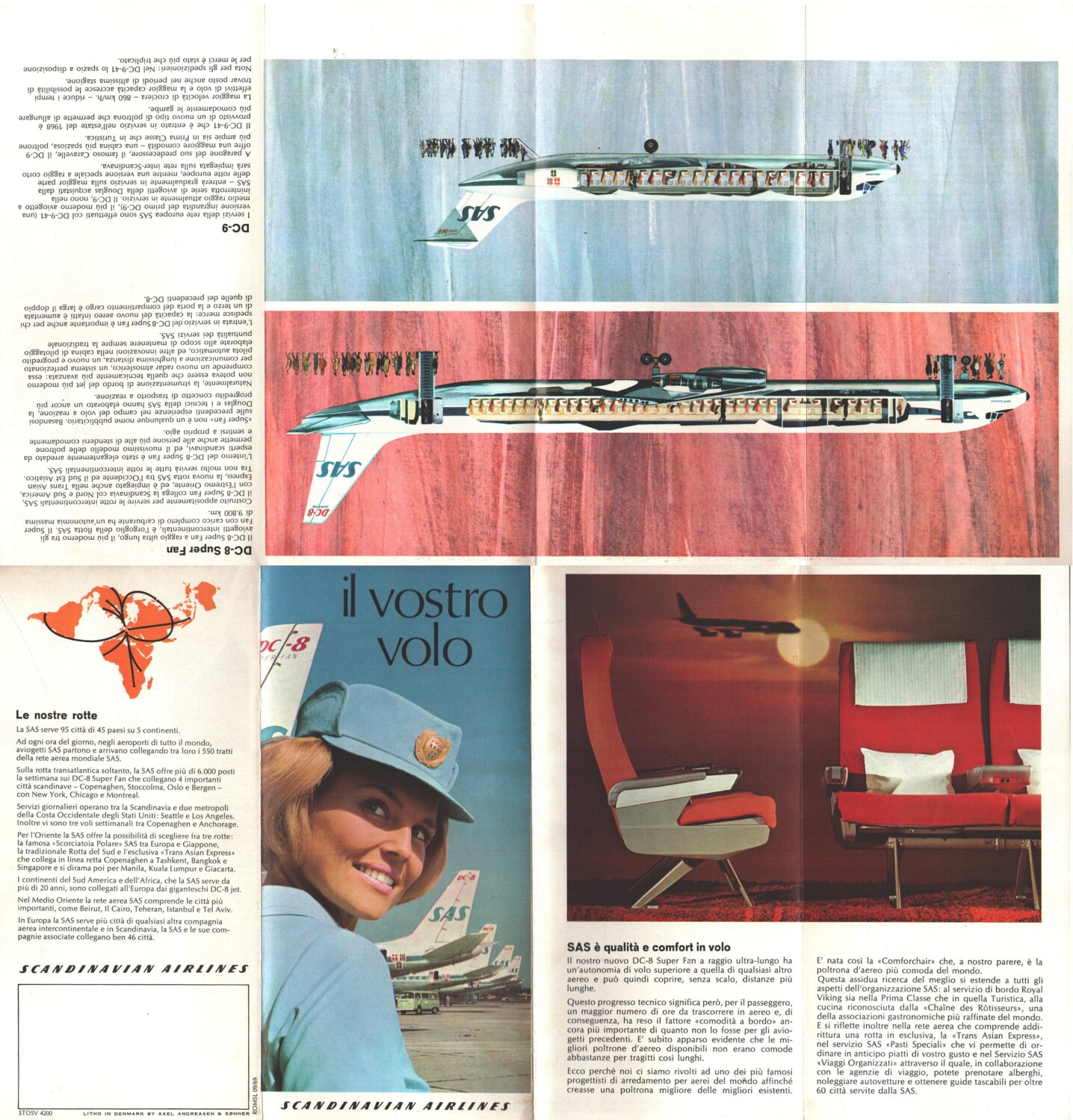 SAS Scandinavian Airlines Flight – Brochure Depliant Pubblicità Vintage 1969 – Il Vostro Volo