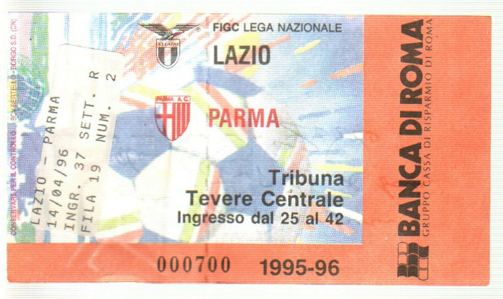Biglietto Stadio Partita LAZIO PARMA Campionato 1995/96