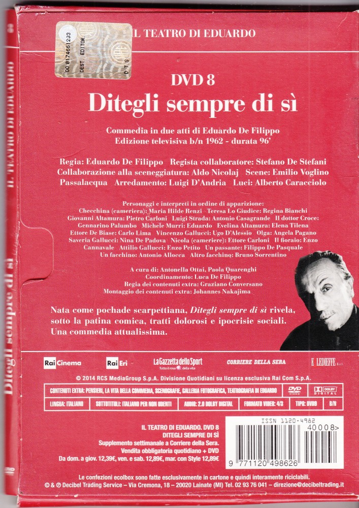 | Titolo: | Ditegli sempre di sì. Il Teatro di Eduardo vol. 8. DVD in Italiano. Versione da edicola |