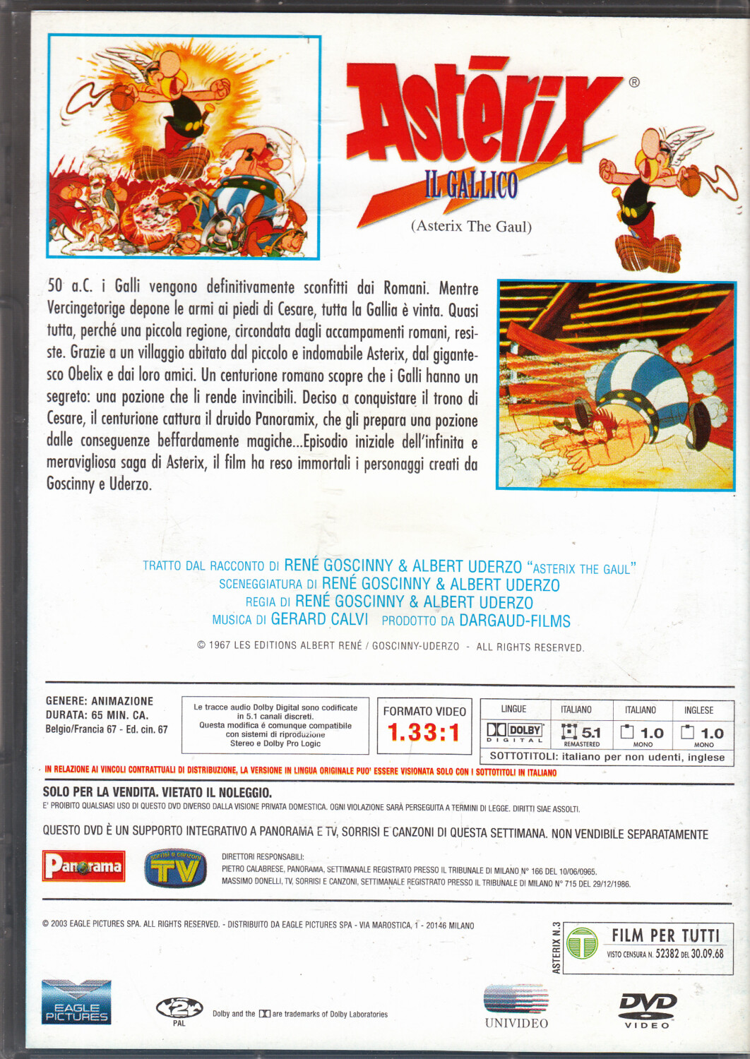 | Titolo: | Asterix Il Gallico. Versione Restaurata e Rimasterizzata. DVD in Italiano. Versione da edicola |
