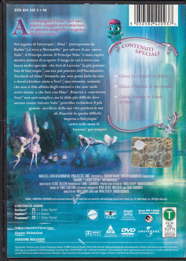 | Titolo: | Barbie Fairytopia Mermaidia. DVD in Italiano. Versione Noleggio |