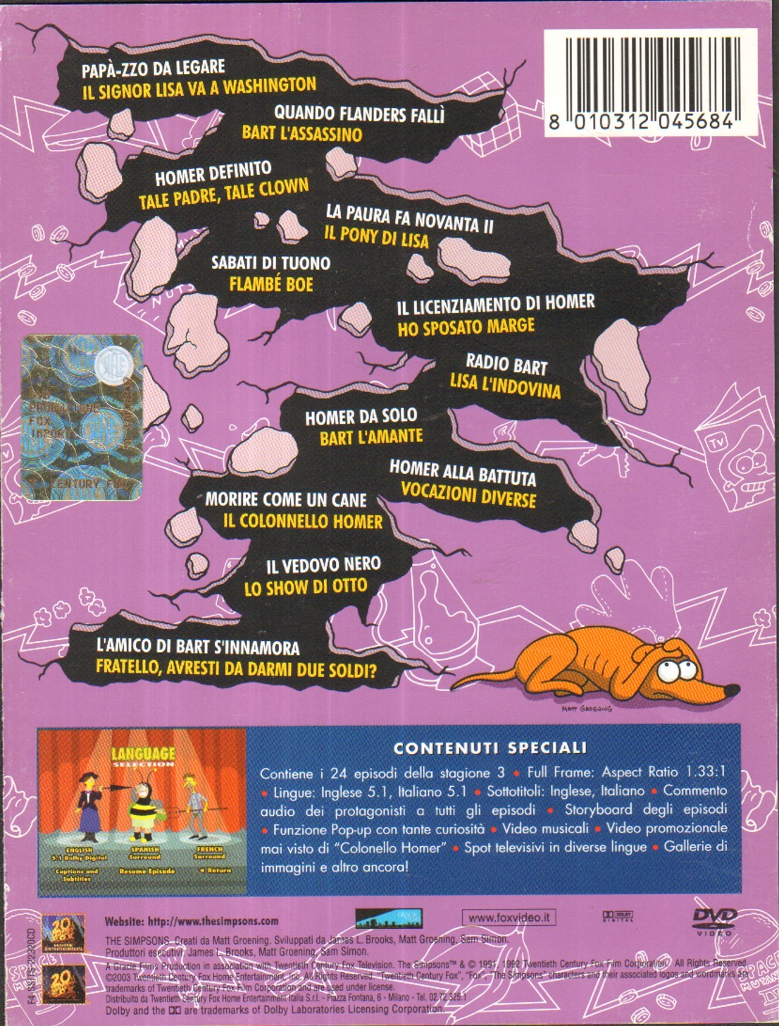 | Titolo: | I Simpson – Terza Stagione 3 Completa (Episodi 1-24) (4 DVD) con Cofanetto da Collezione – DVD in Italiano |