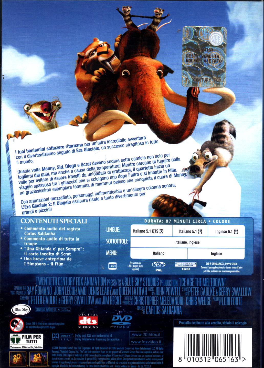 | Titolo: | L’Era Glaciale 2. Il Disgelo con le inedite avventure di Scrat. DVD in Italiano |