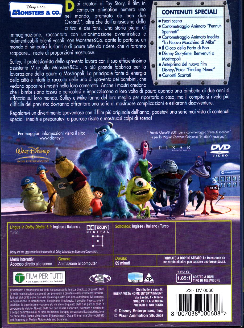 | Titolo: | Monsters e Co. DVD in Italiano Disney Pixar |