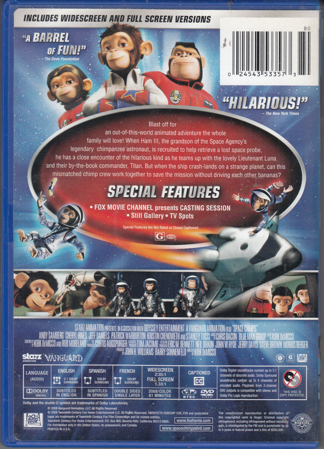 | Titolo: | Space Chimps. DVD Edizione Stati Uniti NTSC Regione 1, Lingua Inglese |
