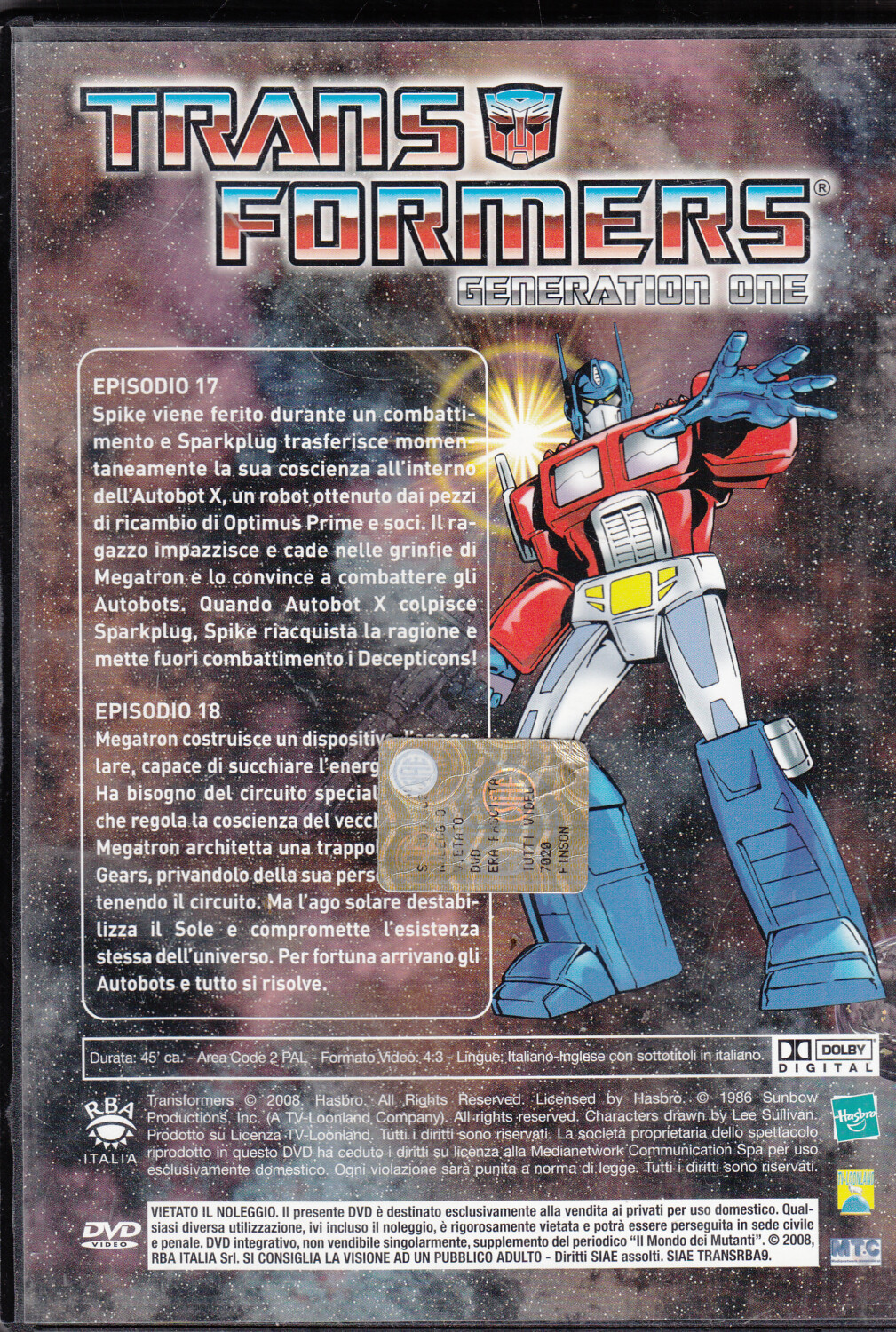 | Titolo: | Transformers Generation One G1. (Primi 9 DVD della serie. Episodi 1-18) Raccolta NON COMPLETA. Versione da edicola |