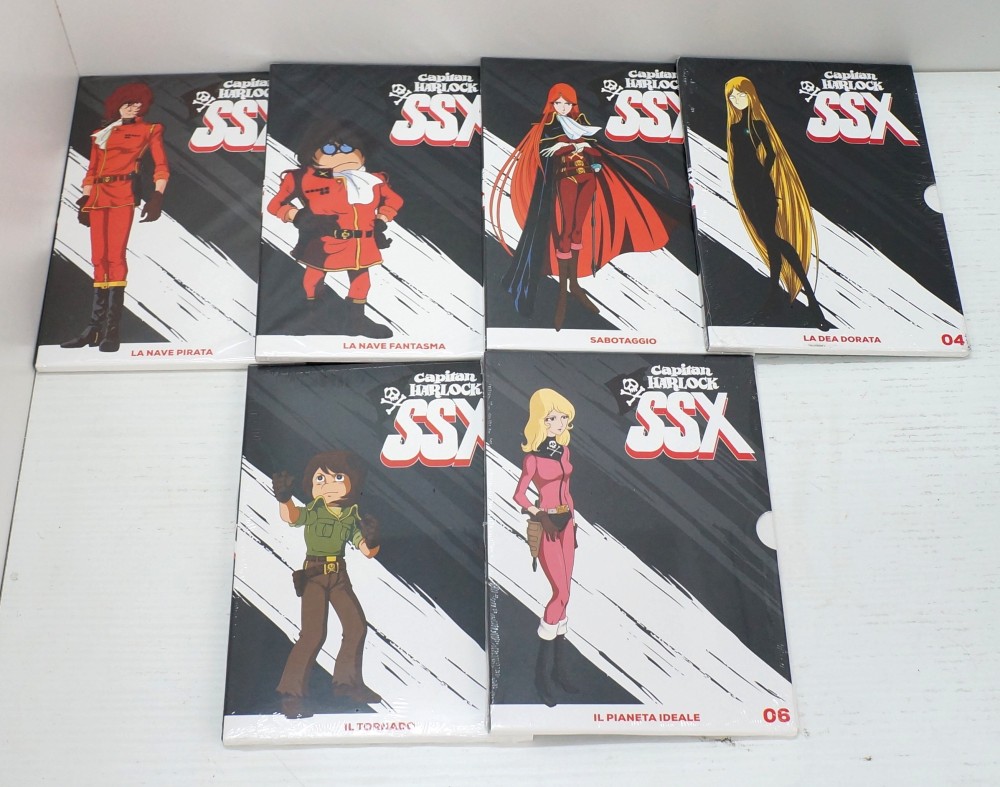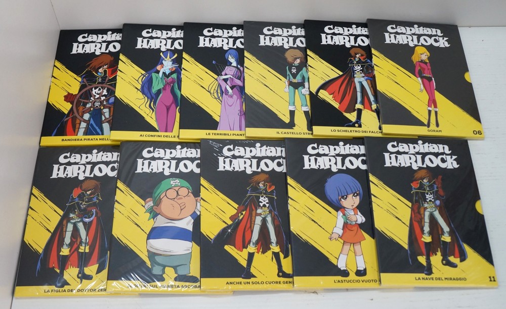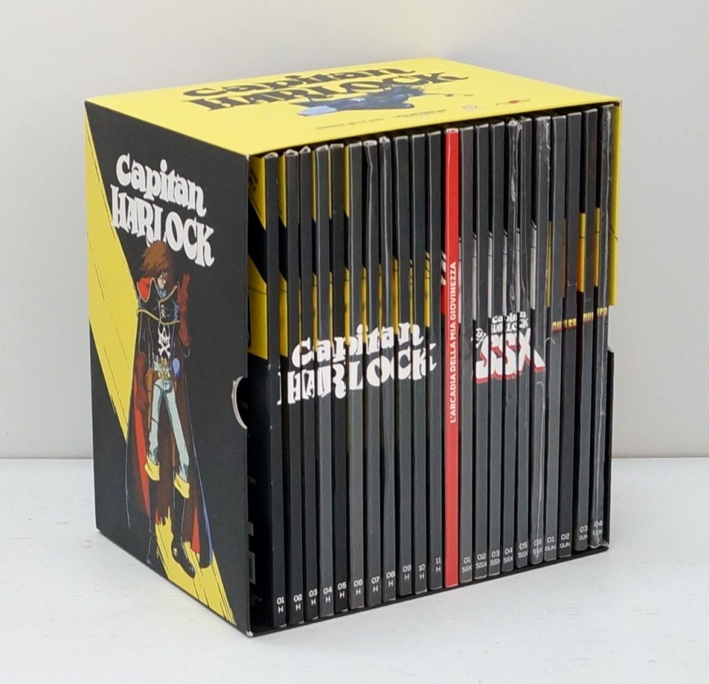 Nel seguente cofanetto sono inclusi: -n. 11 dischi della serie CAPITAN HARLOCK con gli episodi dal n. 1 al n. 42 -n. 6 dischi della serie CAPITAN HARLOCK SSX con gli episodi dal n. 1 al n. 22 -n. 4 dischi della serie Capitan Harlock GUN FRONTIER con gli episodi dal n. 1 al n. 13 -n. 1 disco CAPITAN HARLOCK L’ARCADIA DELLA MIA GIOVINEZZA |