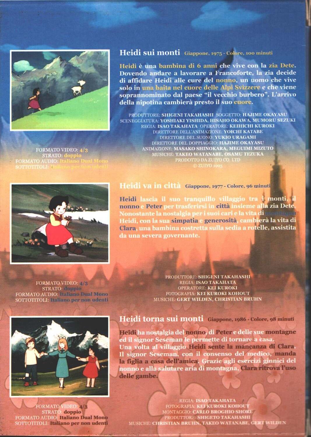| Titolo: | Heidi – I Film in Edizione Restaurata e Rimasterizzata con n. 3 DVD in Italiano con Cofanetto (Heidi sui monti, Heidi va in citta’, Heidi torna sui monti) |