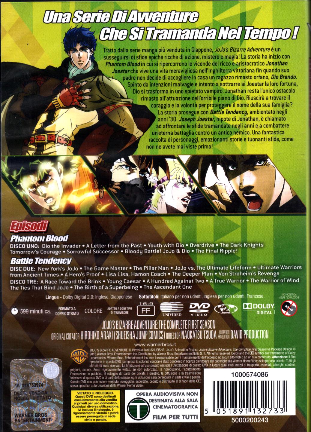 | Titolo: | Jojo’s bizarre adventure – Stagione 1 Completa (3 DVD) (Episodi 1-26) DVD in Inglese |