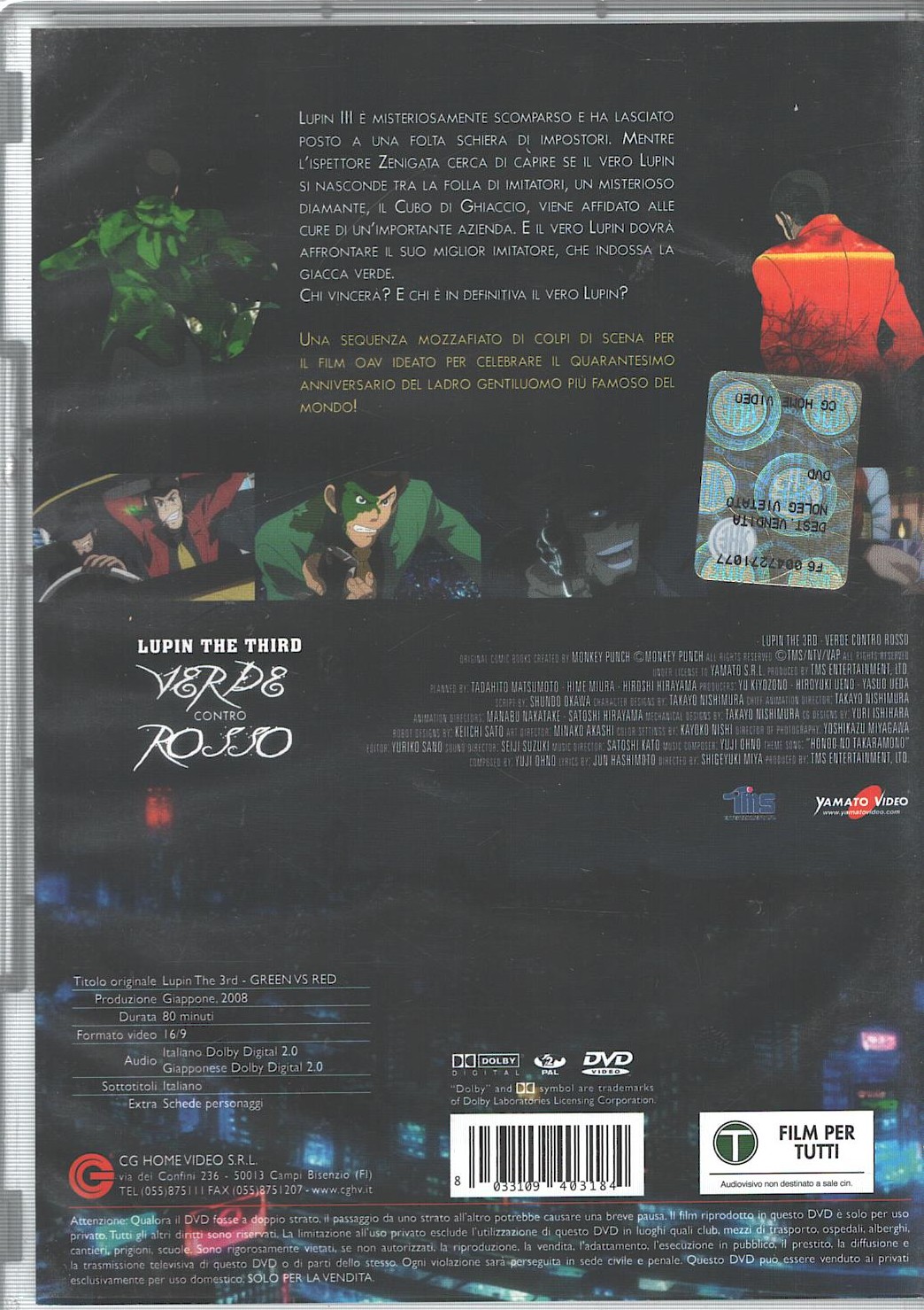 | Titolo: | Lupin III the 3rd – Verde contro rosso – DVD in Italiano |
