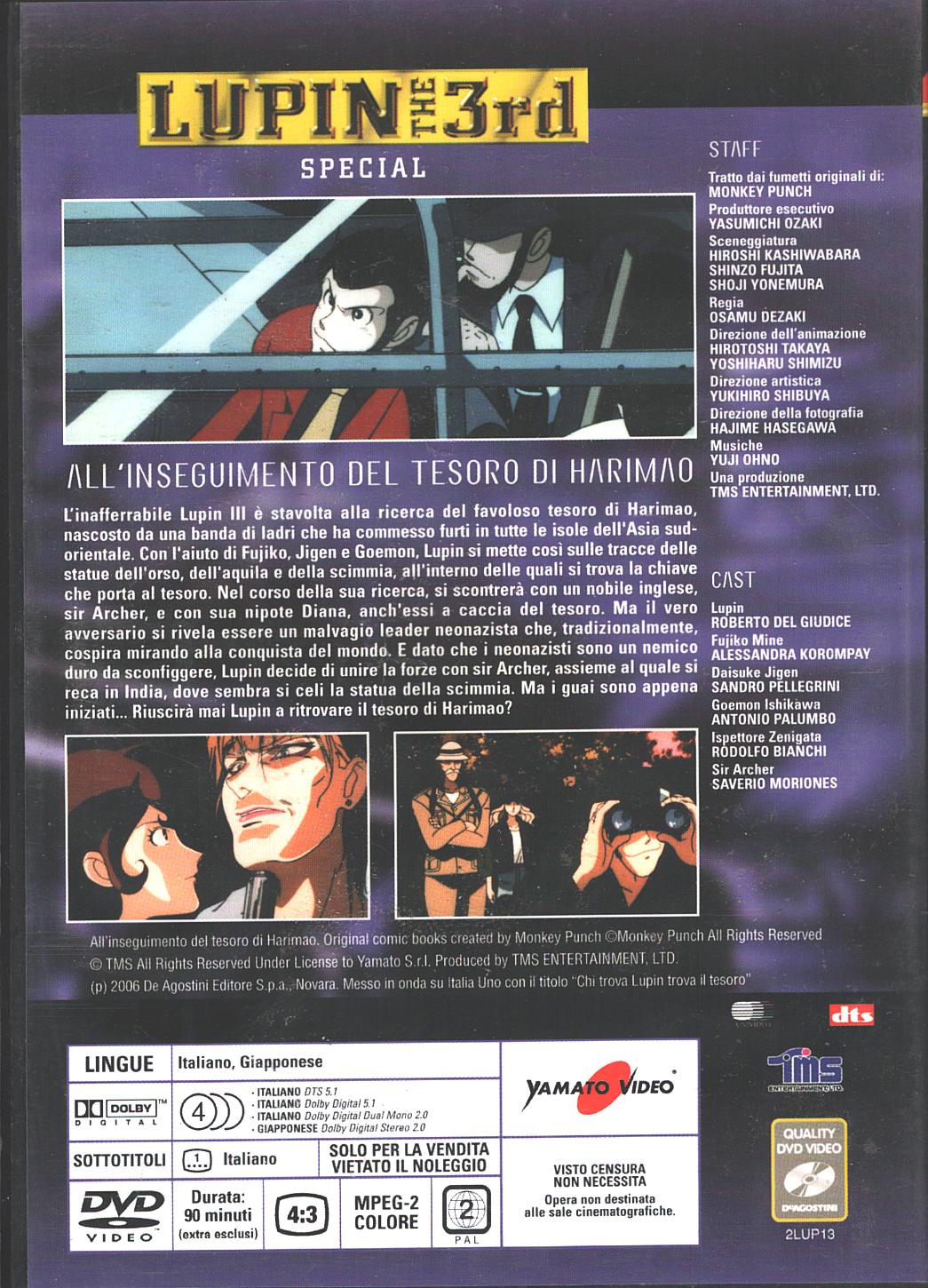 | Titolo: | Lupin III The 3rd – All’Inseguimento del tesoro di Harimao – DVD Versione da edicola – DVD in Italiano |
