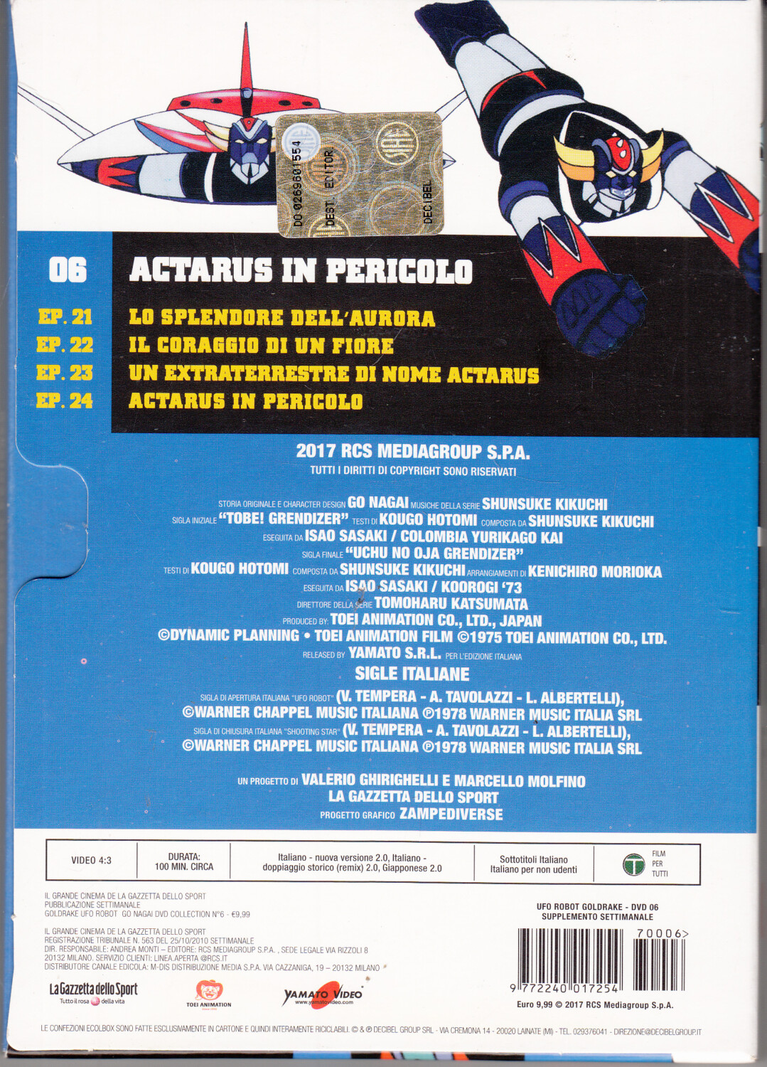 | Titolo: | Ufo Robot Goldrake vol. 6: Actarus in Pericolo. Episodi 21-24. DVD in Italiano. Versione da Edicola |
