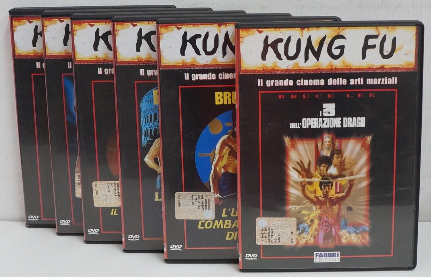 Bruce Lee. Lotto di 6 film con n. 6 DVD in Italiano. Versione da edicola (Dalla Cina con Furore, Il furore della Cina colpisce ancora, L’urlo di Chen terrorizza l’Occidente, I 3 dell’operazione drago, L’ultima sfida di Bruce Lee, L’ultimo combattimento di Chen)
