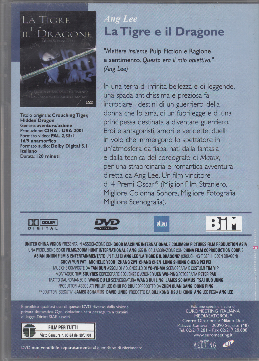 | Titolo: | La Tigre e il Dragone – Versione da edicola – DVD in Italiano |