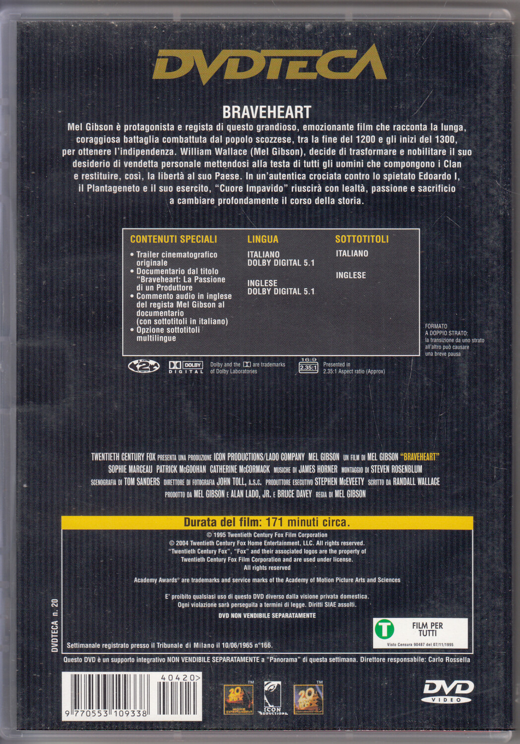 | Titolo: | Mel Gibson Braveheart – Versione da edicola. DVD in Italiano |