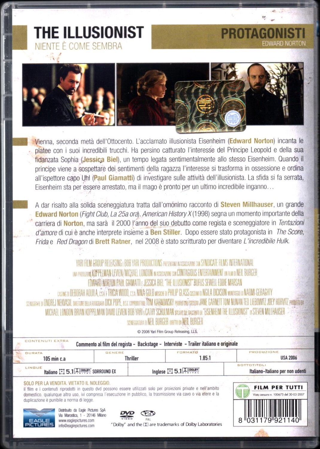 | Titolo: | The Illusionist (Edward Norton) – Protagonisti – DVD in Italiano |