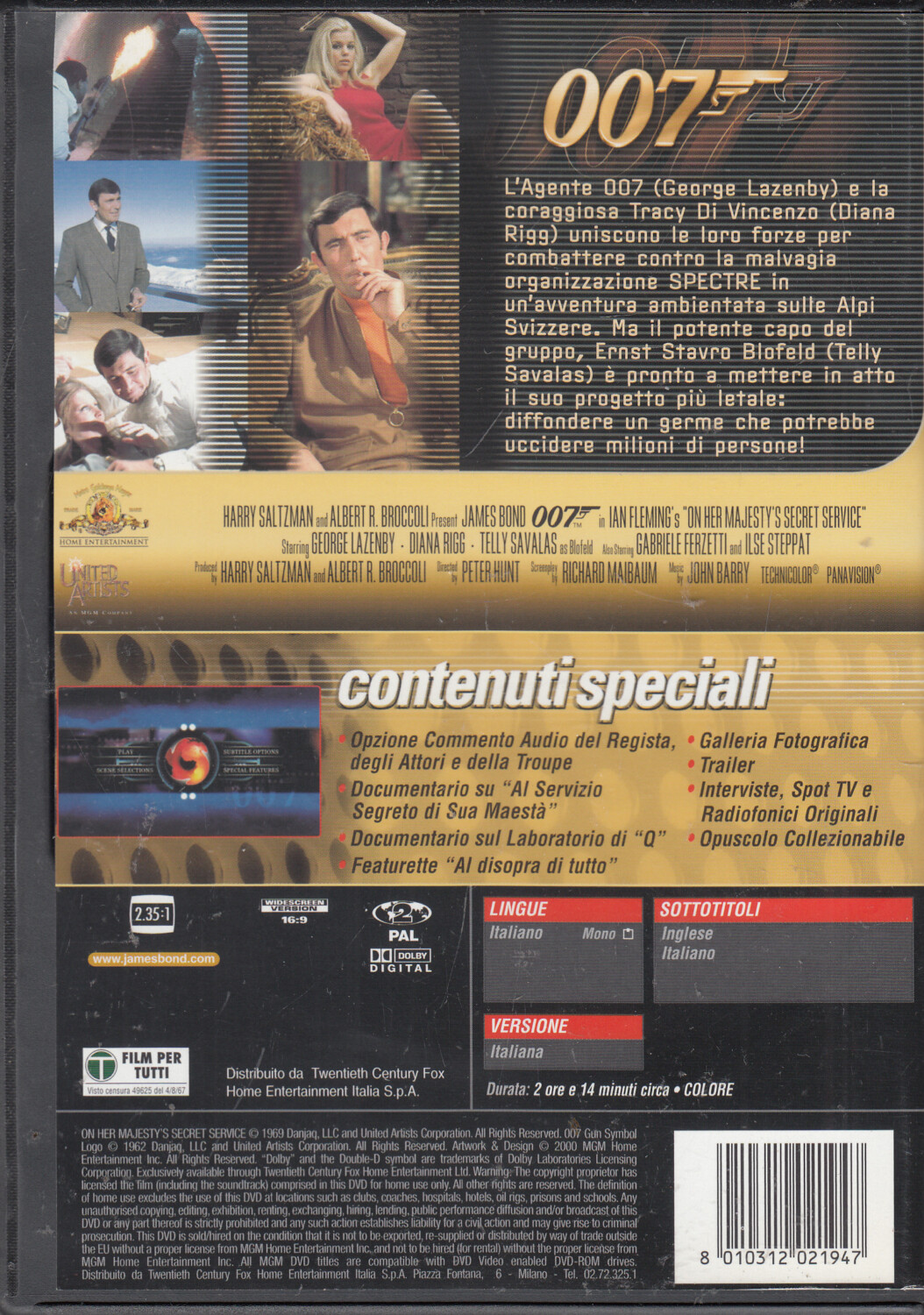 | Titolo: | 007 Al servizio di Sua Maesta’ con George Lazenby. Edizione Speciale. DVD in Italiano |