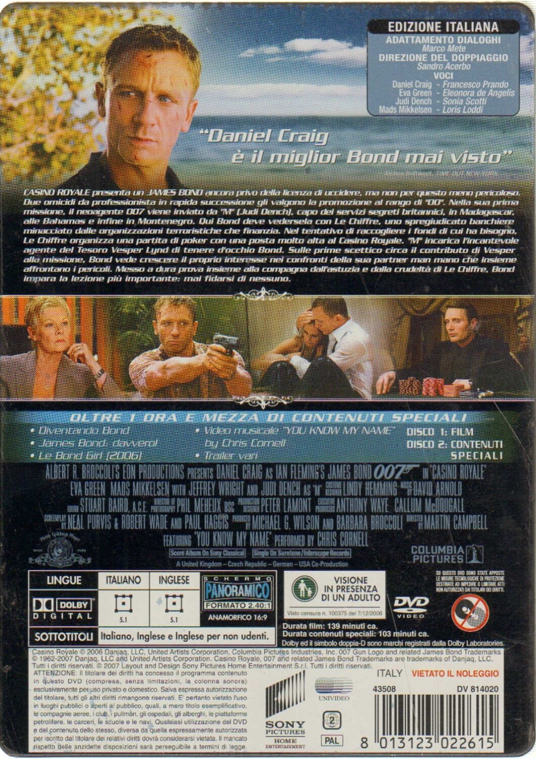 | Cast: | Daniel Craig,Eva Green,Judi Dench,Claudio Santamaria,Giancarlo Giannini,Mads Mikkelsen,Jeffrey Wright,Caterina Murino,Simon Abkarian,Isaach De Bankole’,Jesper Christensen,Ivana Milicevic,Tobias Menzies,Malcolm Sinclair,Richard Sammel,Neal Purvis,Robert Wade,Paul Haggis,Martin Campbell |