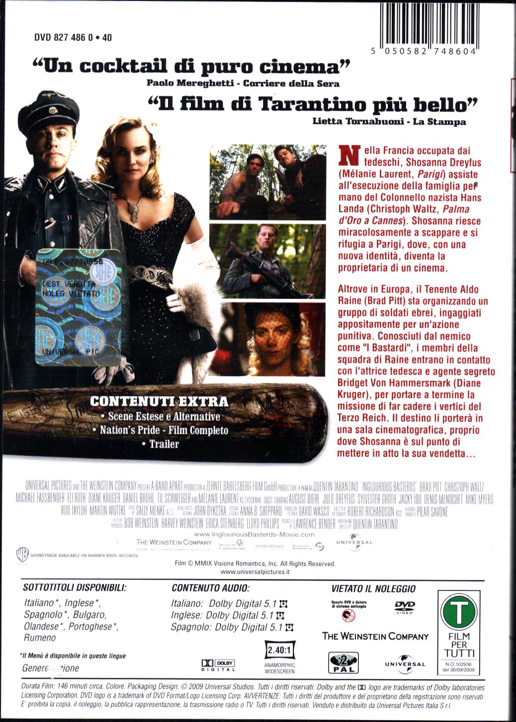 | Titolo: | Bastardi Senza Gloria DVD in Italiano Brad Pitt |