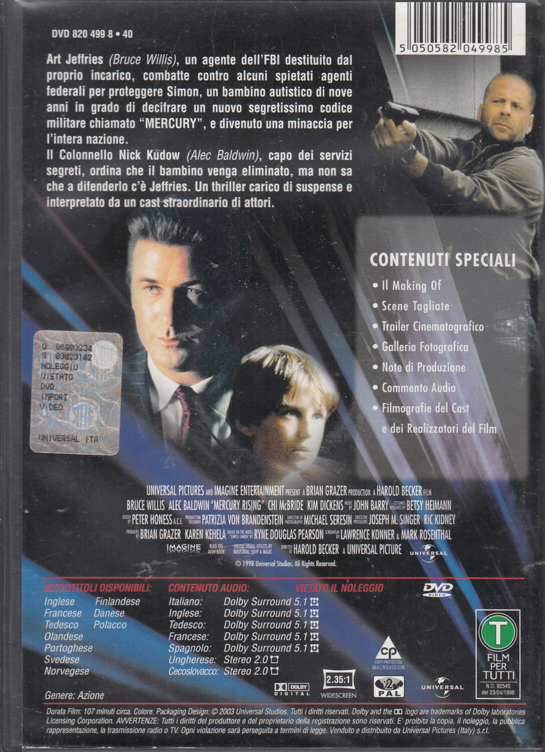 Disco: Condizioni Ottime (Presenta qualche leggerissimo graffietto, perfettamente funzionante) --- Custodia: Condizioni Ottime --- Libretto non presente (foglio cartaceo interno con i dati del film).