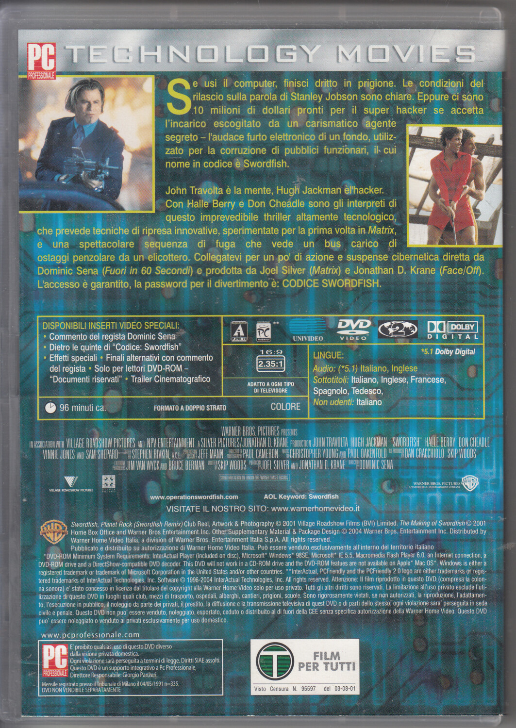 | Titolo: | Codice Swordfish (John Travolta) – Versione da edicola. DVD in Italiano |
