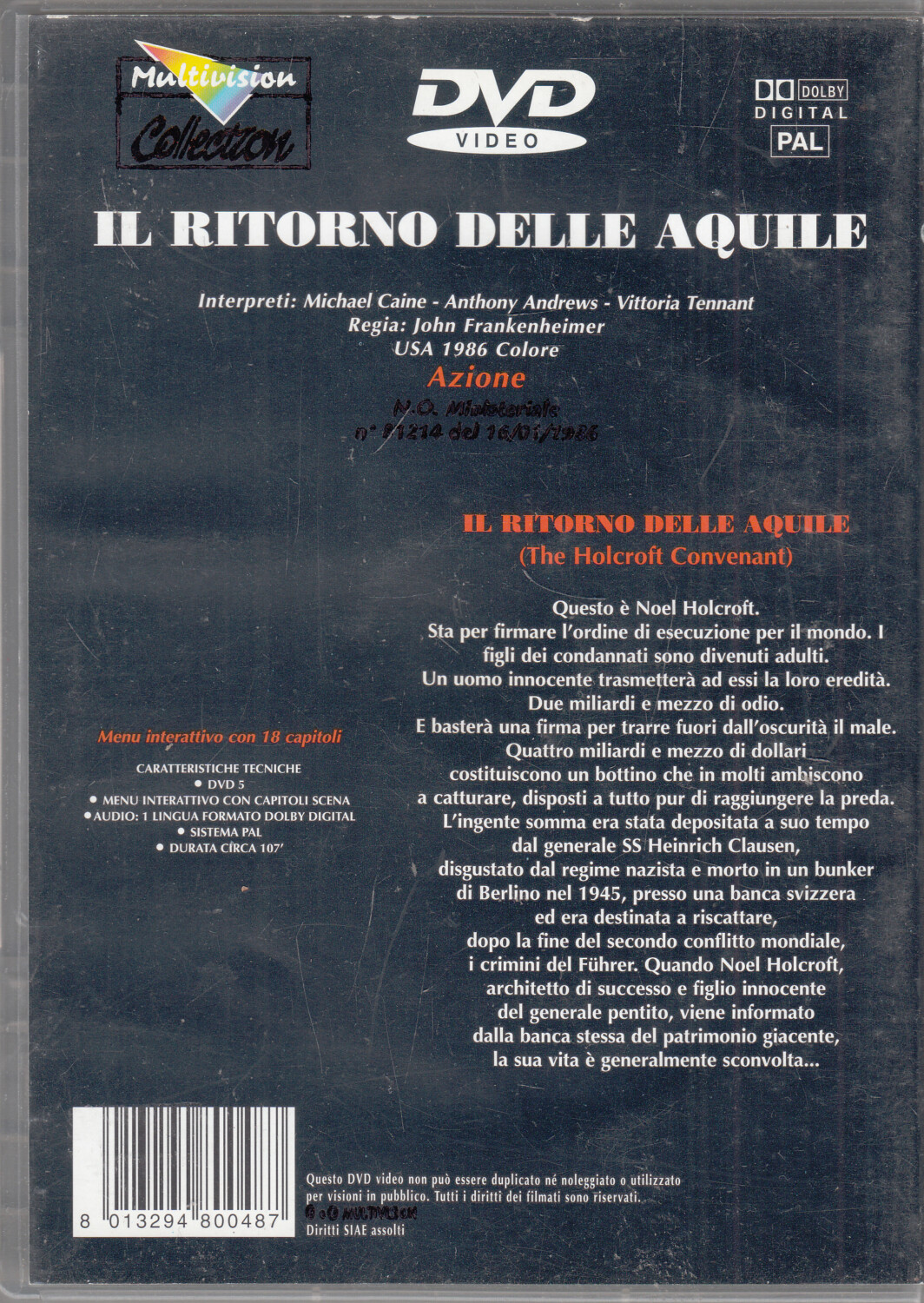 Disco: Condizioni Ottime (Presenta qualche leggerissimo graffietto, perfettamente funzionante) --- Custodia: Condizioni Ottime --- Libretto non presente (foglio cartaceo interno con i dati del DVD).