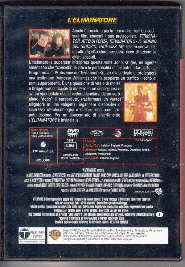 | Titolo: | L’Eliminatore – Eraser (Arnold Schwarzenegger) – Duri a morire – Versione da edicola. DVD in Italiano |