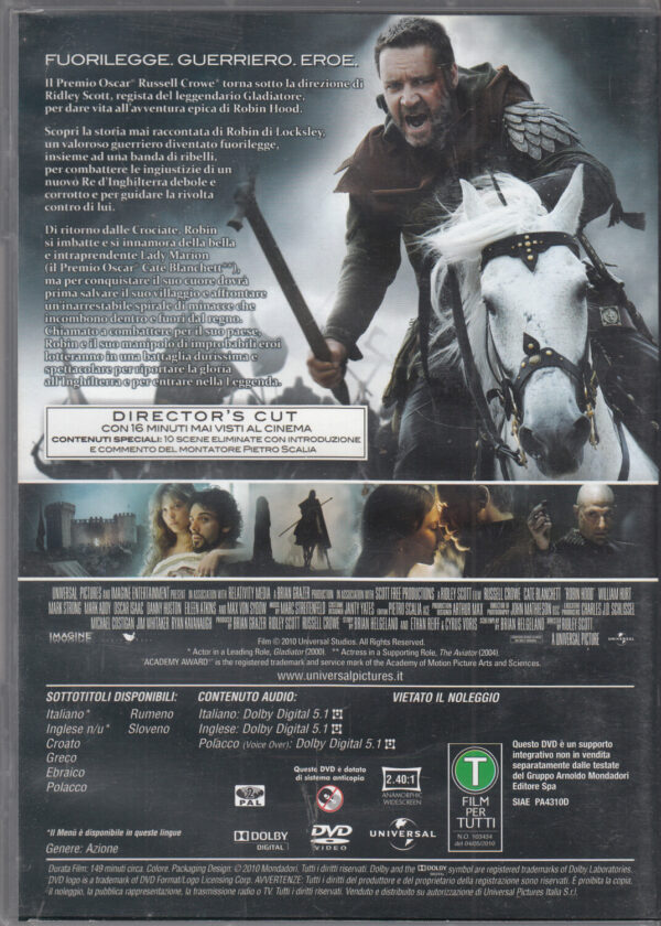 | Titolo: | Robin Hood – Extended Director’s Cut DVD in italiano con Russell Crowe |