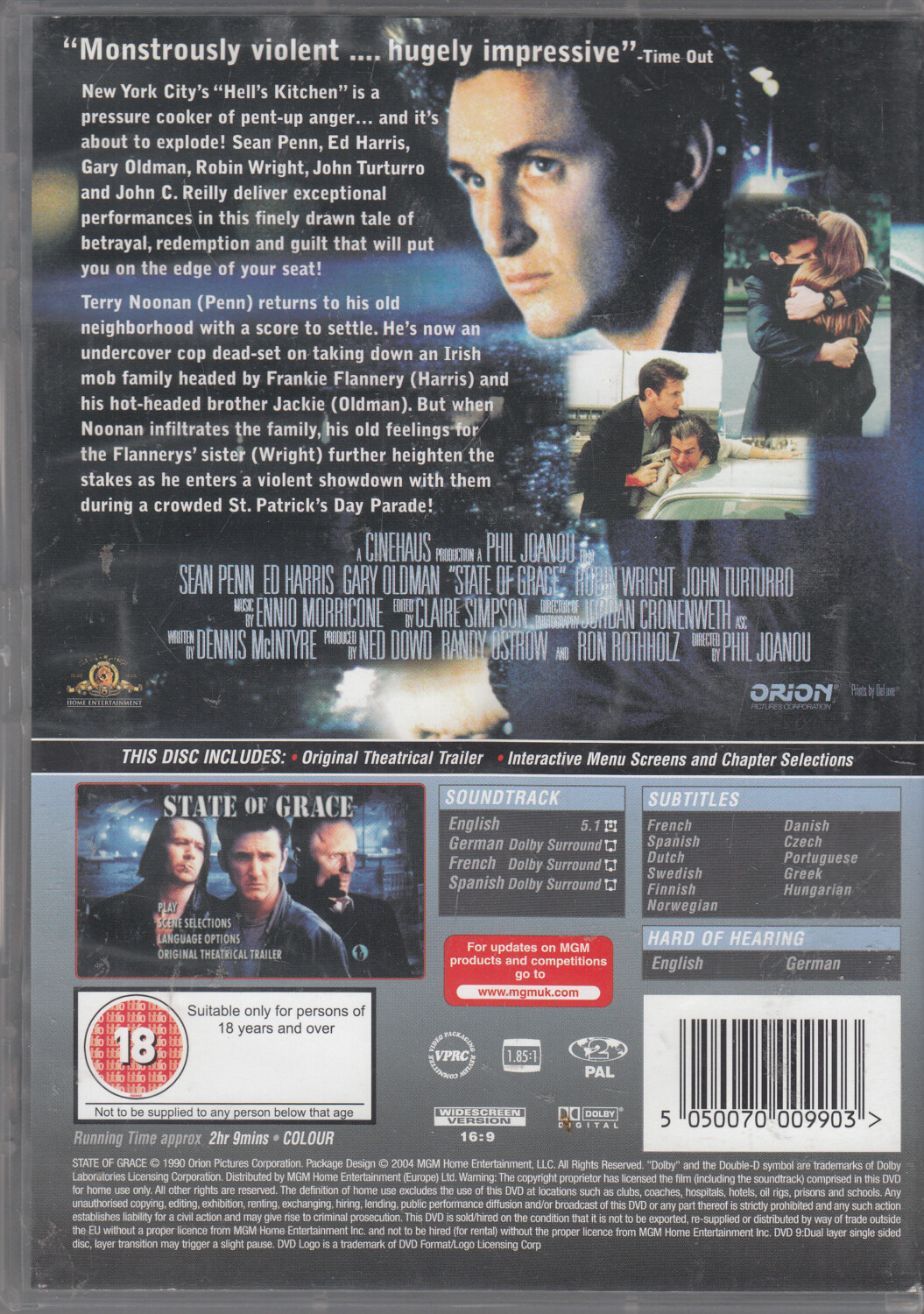 | Titolo: | State Of Grace con Sean Penn. DVD Edizione Regno Unito PAL Regione 2, Lingua Inglese |