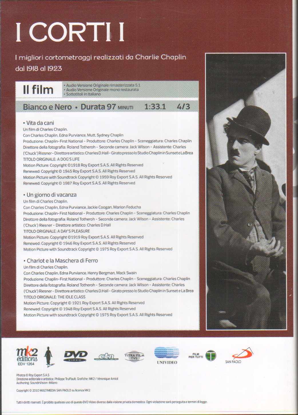 Piano dell’opera: – IL MONELLO – IL GRANDE DITTATORE – TEMPI MODERNI – LUCI DELLA RIBALTA – LA FEBBRE DELL’ORO – IL CIRCO – LUCI DELLA CITTÀ – UN RE A NEW YORK – LA DONNA DI PARIGI – MONSIEUR VERDOUX – I CORTI I – I CORTI II – I CORTI III |