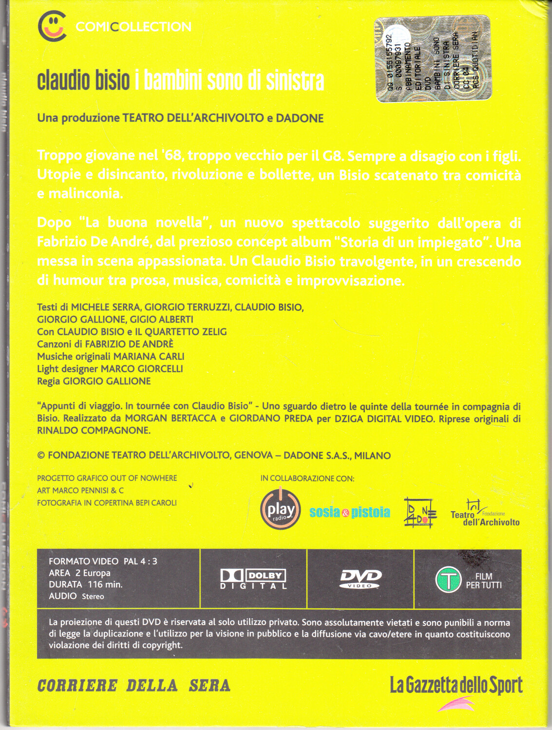 | Titolo: | I bambini sono di sinistra – Claudio Bisio. Comicollection vol. 4. DVD in Italiano. Versione da edicola |